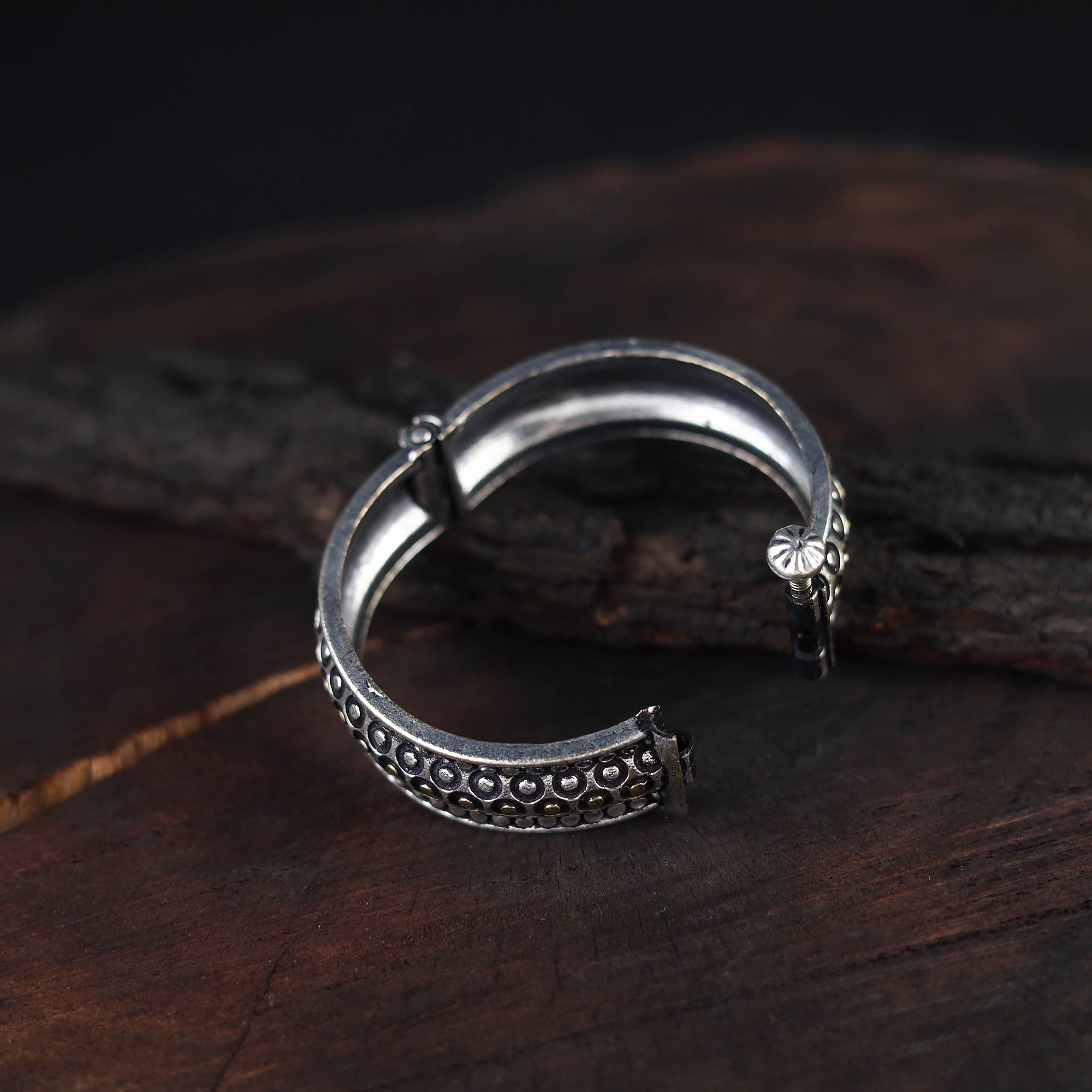 This german silver-plated handcrafted bracelet/kada features intricate oxidised detailing and a timeless antique finish. With its elegant yet durable design, it pairs beautifully with festive Indian attire and everyday fusion looks. A graceful fusion of tradition and modernity, it also makes a thoughtful gift for special occasions.