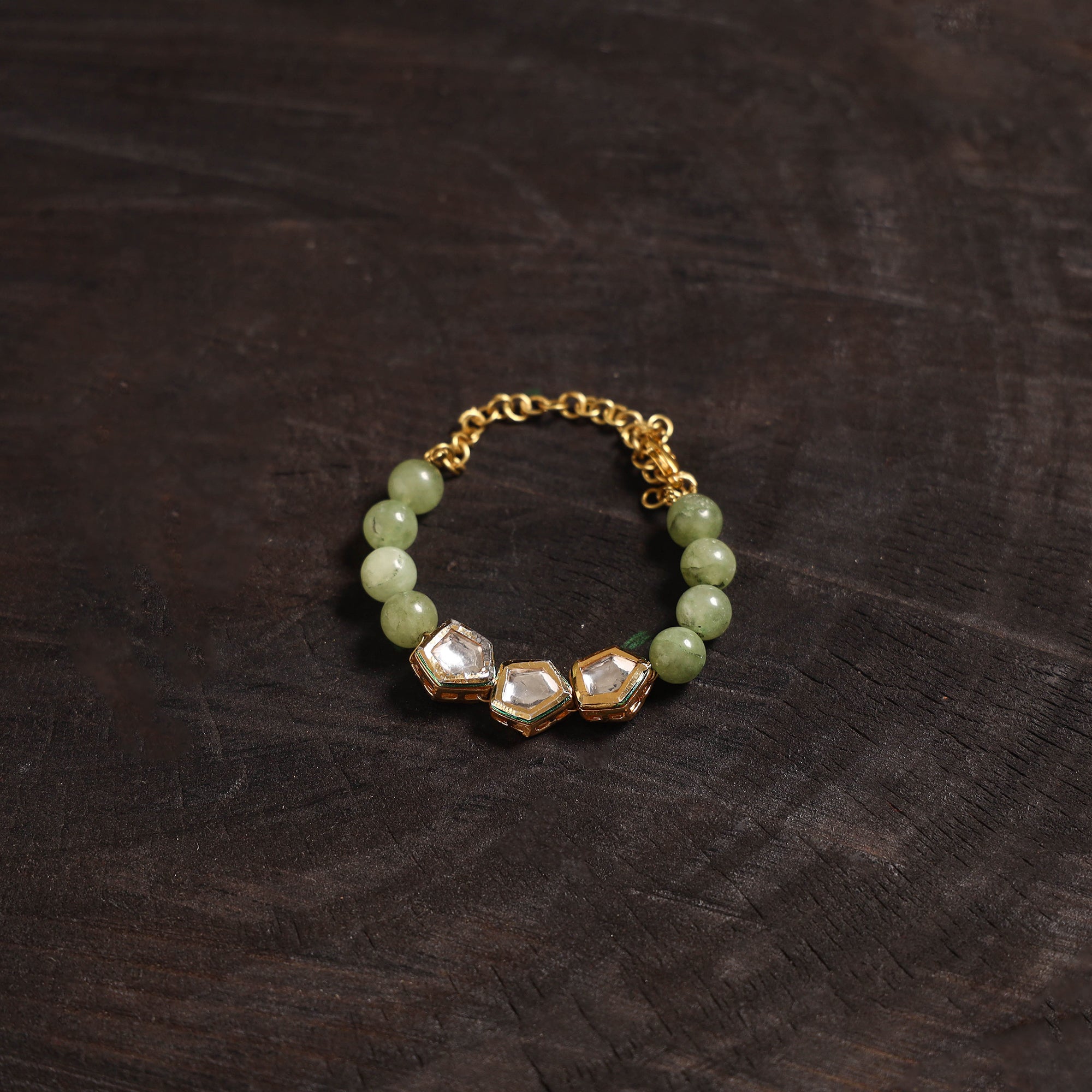| Material | A handcrafted green bracelet featuring carefully set glass stones and kundan, adding a bright, artisanal touch to your look. Pair it with everyday outfits or festive wear, this piece works well as a simple style upgrade or a thoughtful gift. |