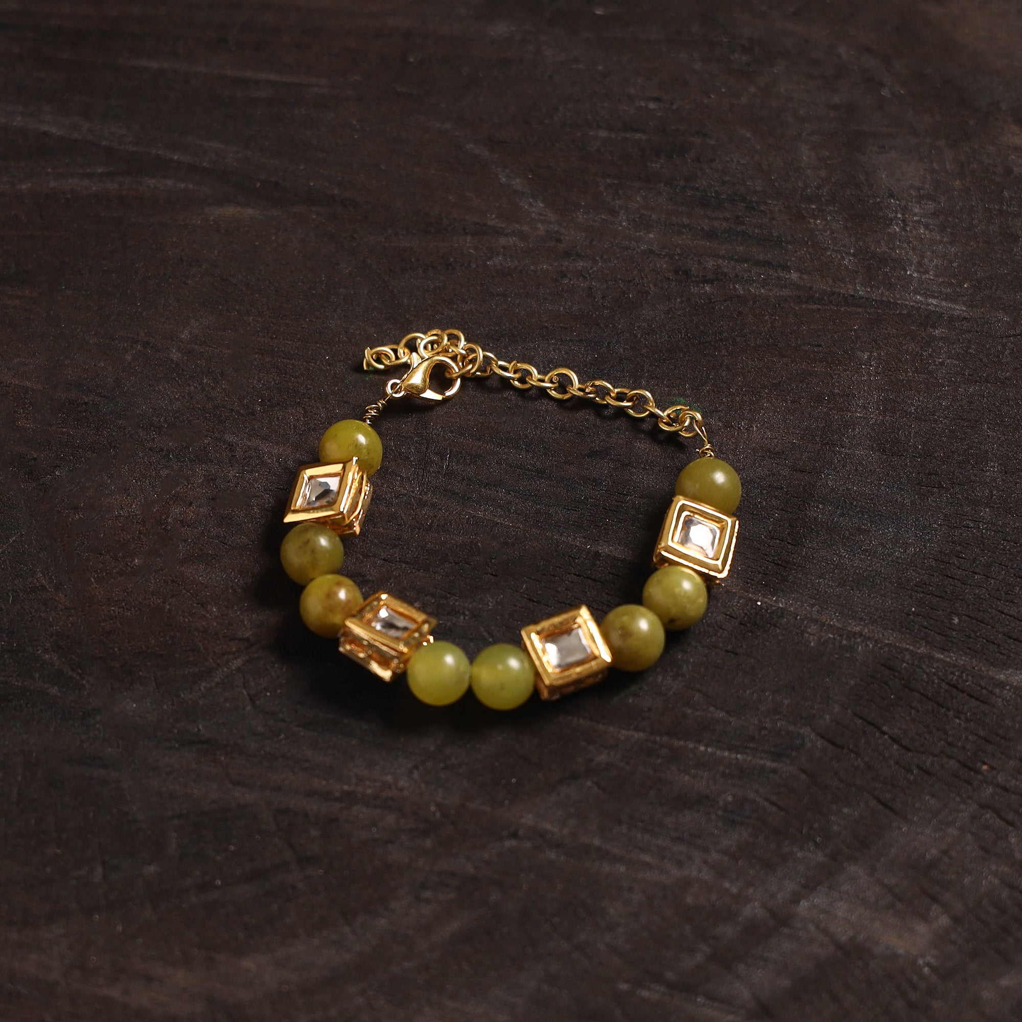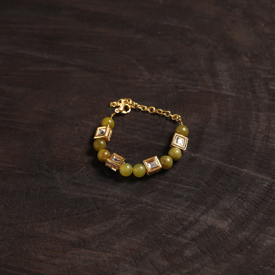 | Material | A handcrafted green bracelet featuring carefully set glass stones and kundan, adding a bright, artisanal touch to your look. Pair it with everyday outfits or festive wear, this piece works well as a simple style upgrade or a thoughtful gift. |