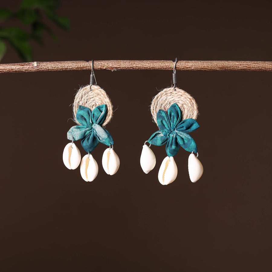 Enhance your everyday style with our blue handcrafted jute phool kali shell earrings. Featuring intricate jute, shell and fabric detailing, they make the perfect accessory for both casual and festive outfits. Explore our collection and adorn yourself with cultural elegance today.