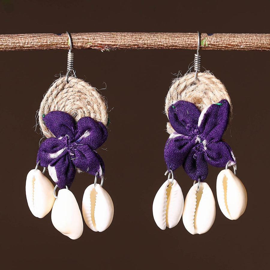 Enhance your everyday style with our purple handcrafted jute phool kali shell earrings. Featuring intricate jute, shell and fabric detailing, they make the perfect accessory for both casual and festive outfits. Explore our collection and adorn yourself with cultural elegance today.