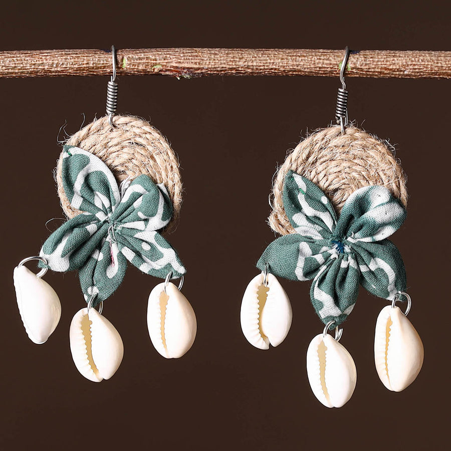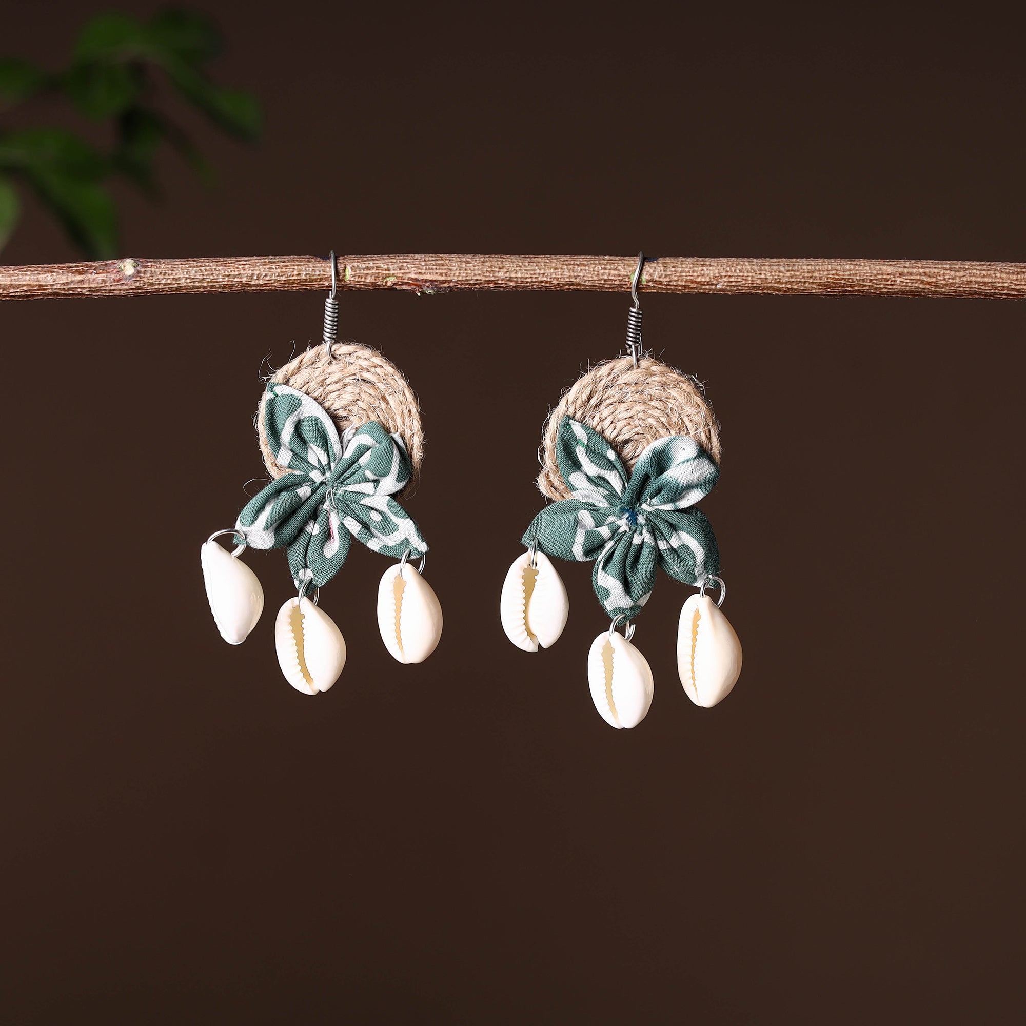 Enhance your everyday style with our handcrafted jute phool kali shell earrings. Featuring intricate jute, shell and fabric detailing, they make the perfect accessory for both casual and festive outfits. Explore our collection and adorn yourself with cultural elegance today.