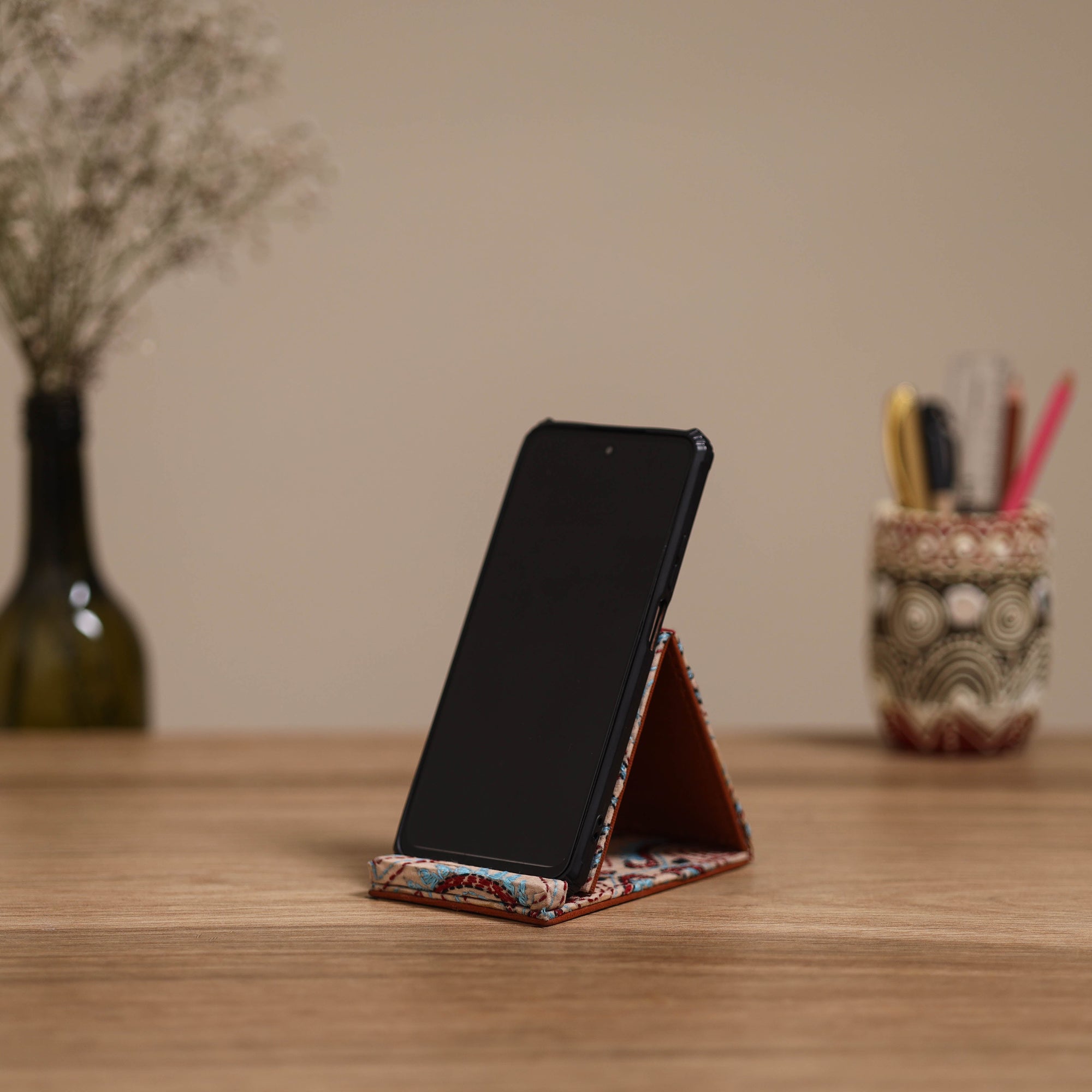 Kantha hand embroidered mobile stand is thoughtfully created on a sturdy hard board and beautifully finished with contemporary patterns. Carefully made by skilled artisans from West Bengal, it reflects the charm of traditional kantha embroidery passed down through generations. Lightweight and easy to carry, this mobile stand is perfect for travel or daily use.