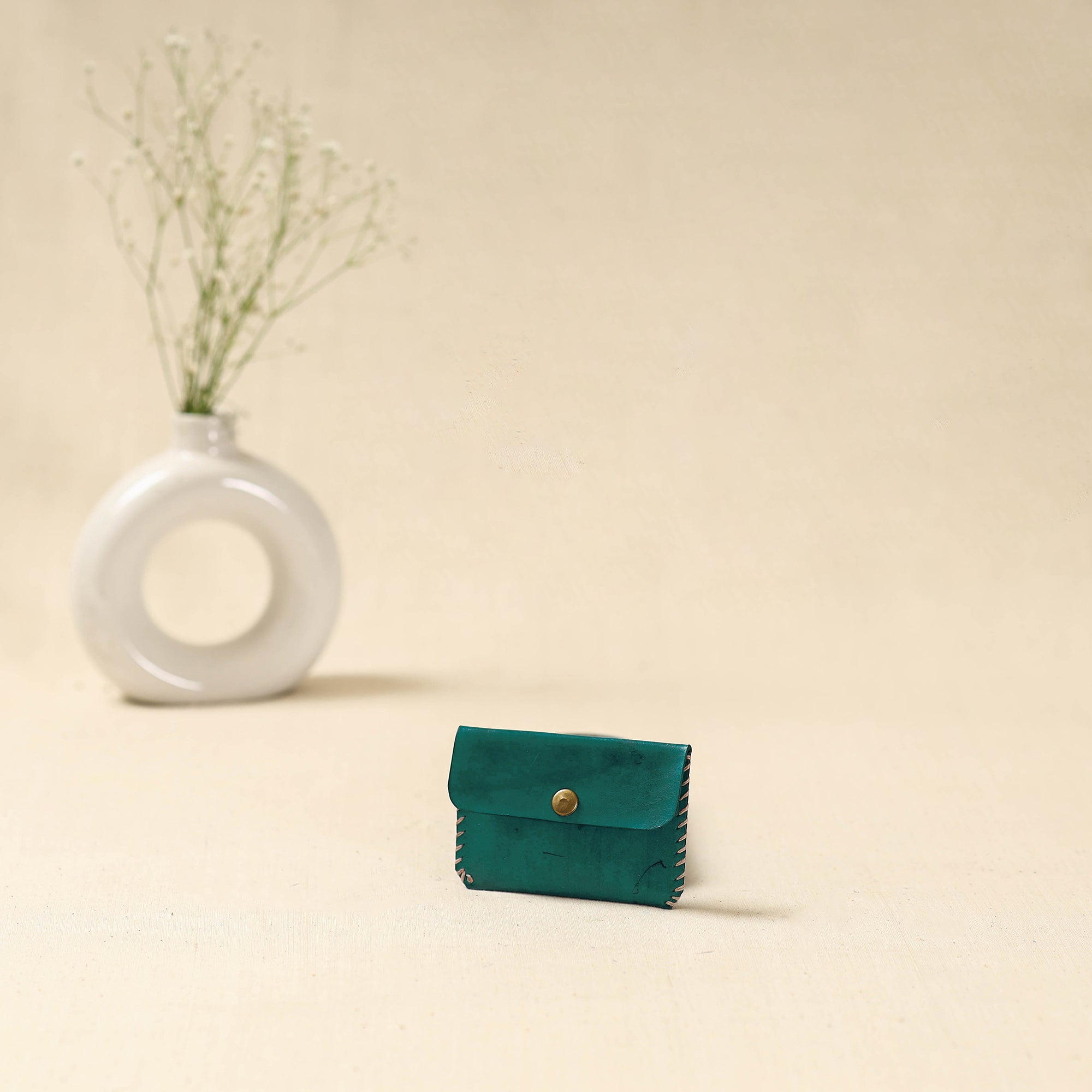 Green kutch embroidery card holder is made using leather, crafted by skilled artisans from the Kutch region of Gujarat. Designed for everyday convenience, it helps keep your cards and essentials neatly organised.