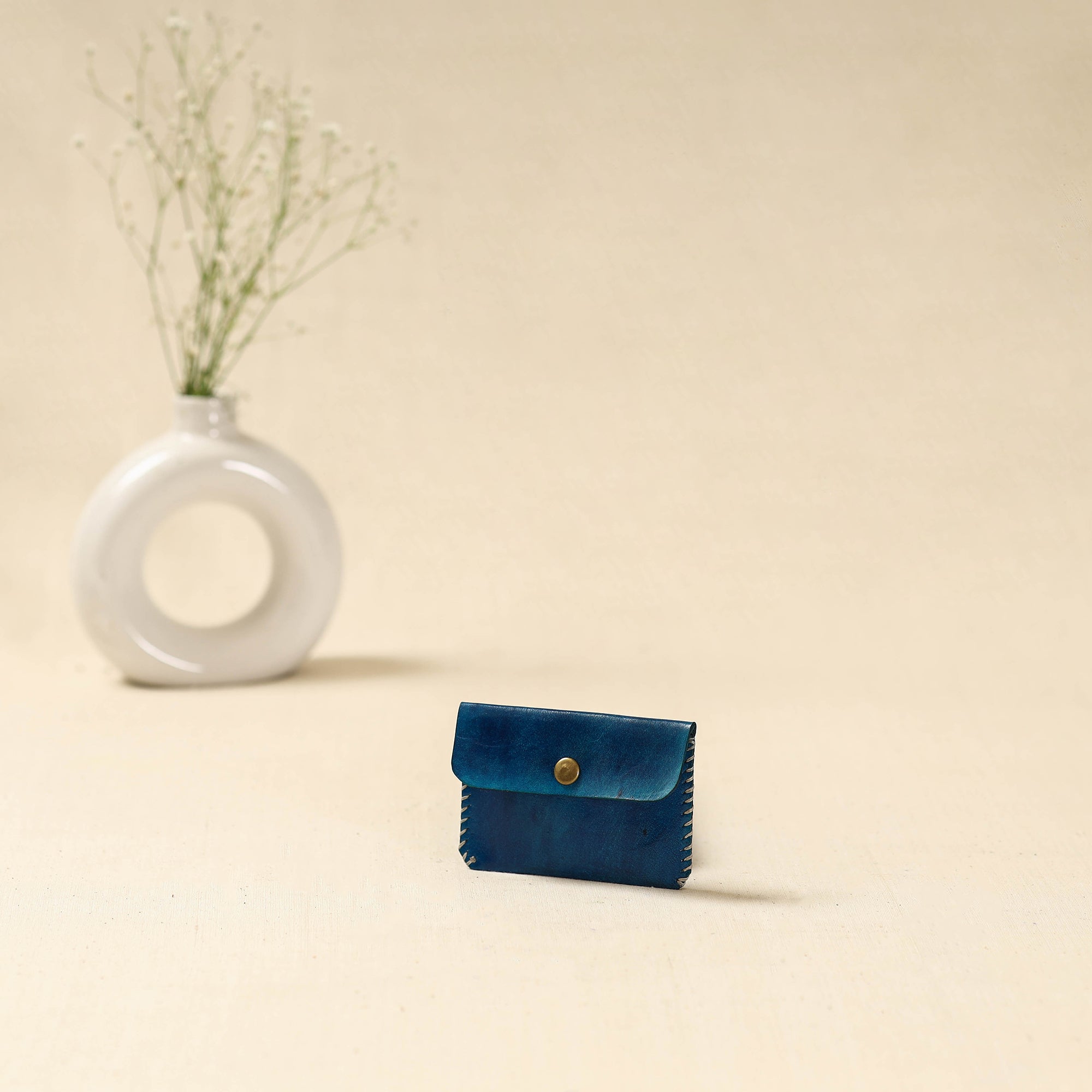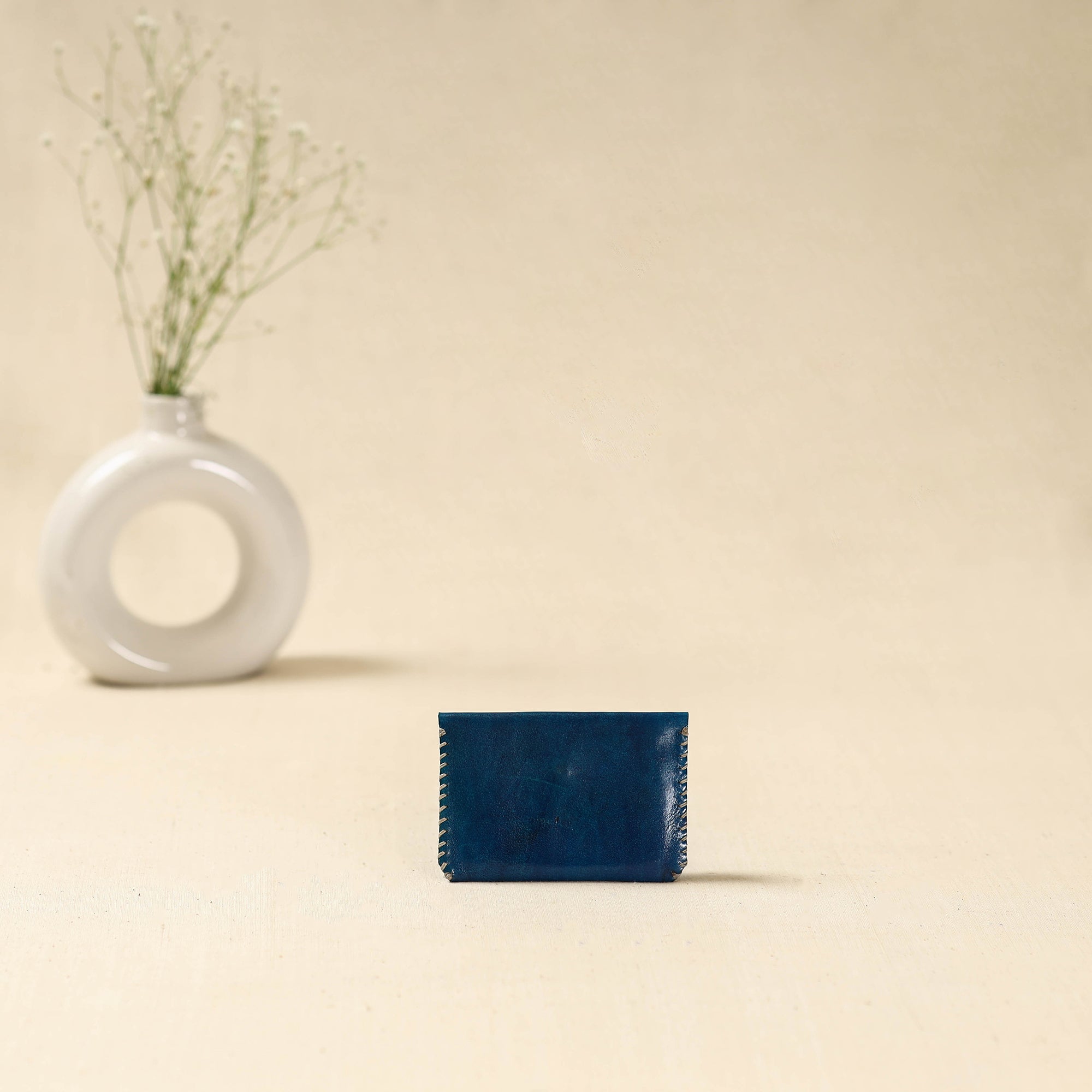 Blue kutch embroidery card holder is made using leather, crafted by skilled artisans from the Kutch region of Gujarat. Designed for everyday convenience, it helps keep your cards and essentials neatly organised.