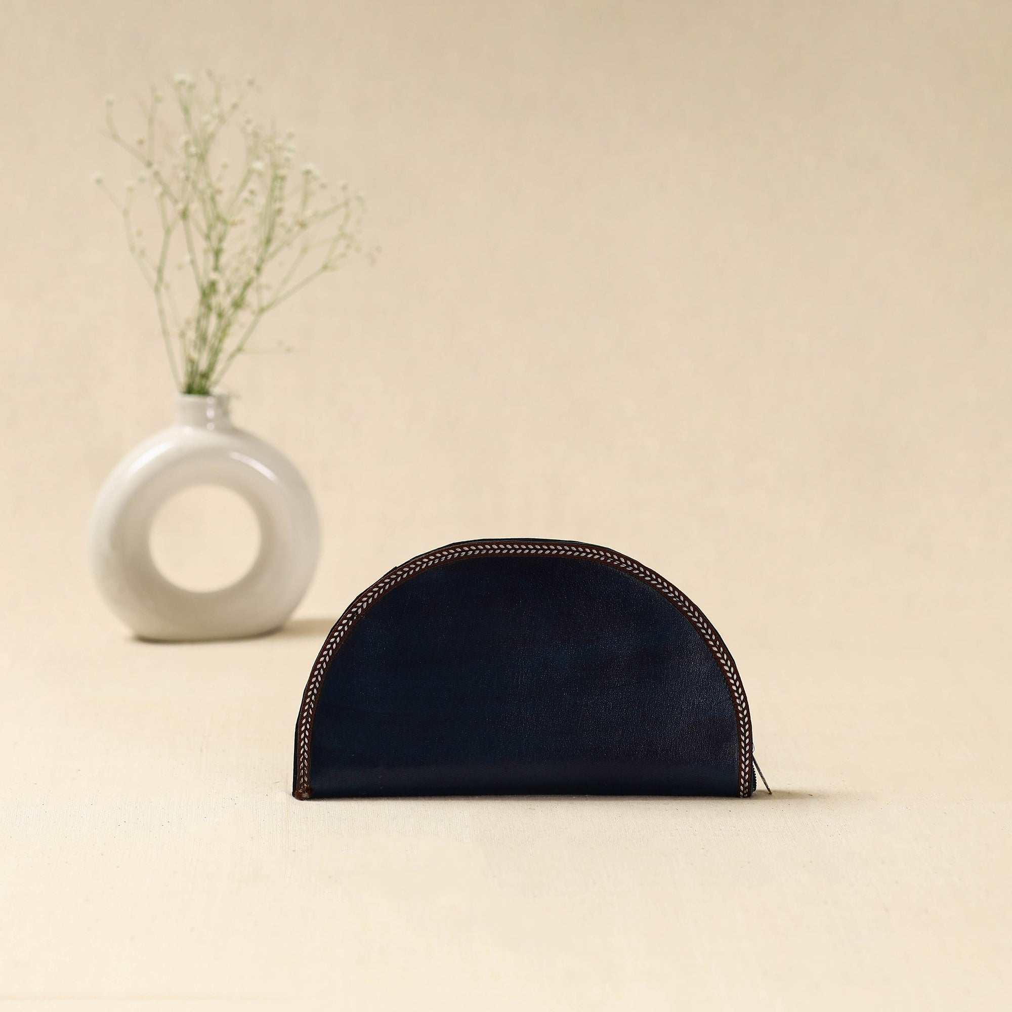 Handcrafted black clutch wallet is made using leather by skilled artisans from the Kutch region of Gujarat. Designed for everyday convenience, it features three main compartments to keep your essentials organised, along with two secure zippered pockets for valuables like cash and cards.