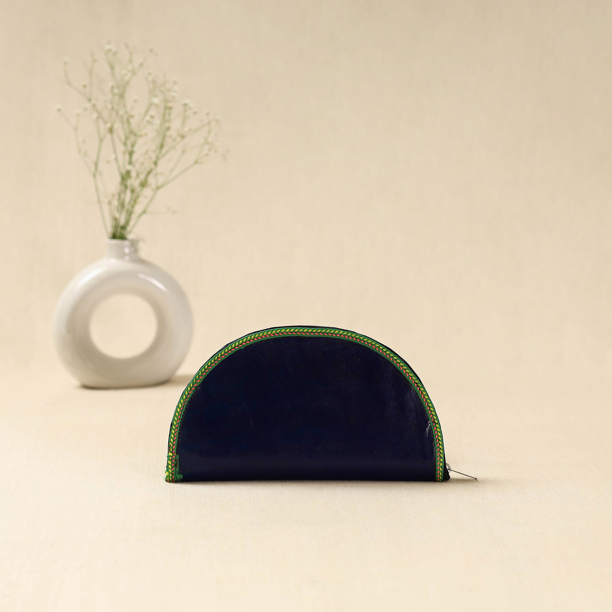 Handcrafted blue clutch wallet is made using leather by skilled artisans from the Kutch region of Gujarat. Designed for everyday convenience, it features three main compartments to keep your essentials organised, along with two secure zippered pockets for valuables like cash and cards.