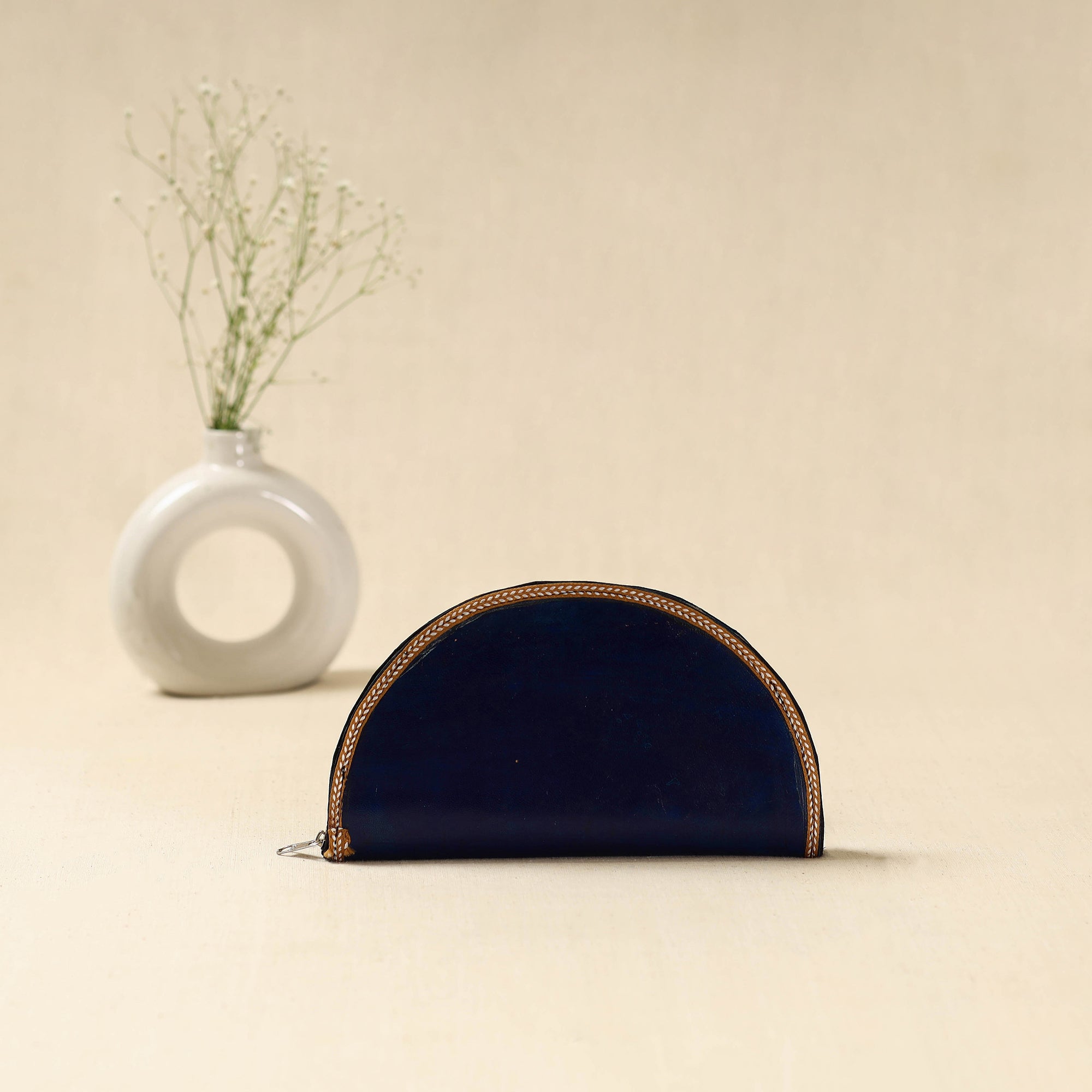 Handcrafted blue clutch wallet is made using leather by skilled artisans from the Kutch region of Gujarat. Designed for everyday convenience, it features three main compartments to keep your essentials organised, along with two secure zippered pockets for valuables like cash and cards.