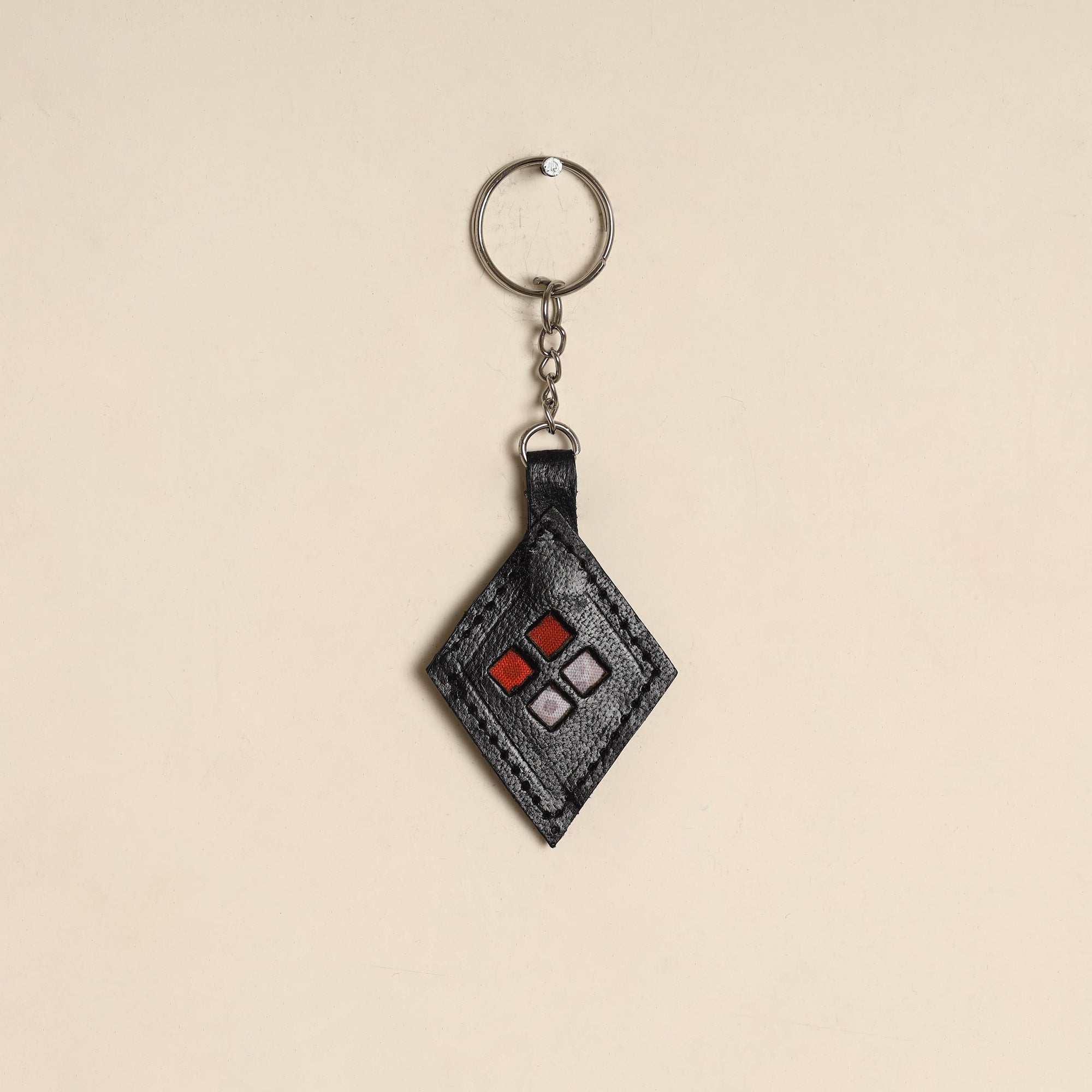 Handcrafted keychain is made by Mohan Marvada using traditional techniques from Kutch district in Gujarat. Crafted from durable leather it features cutwork detailing. This keychain is ideal for everyday use and thoughtful gift.