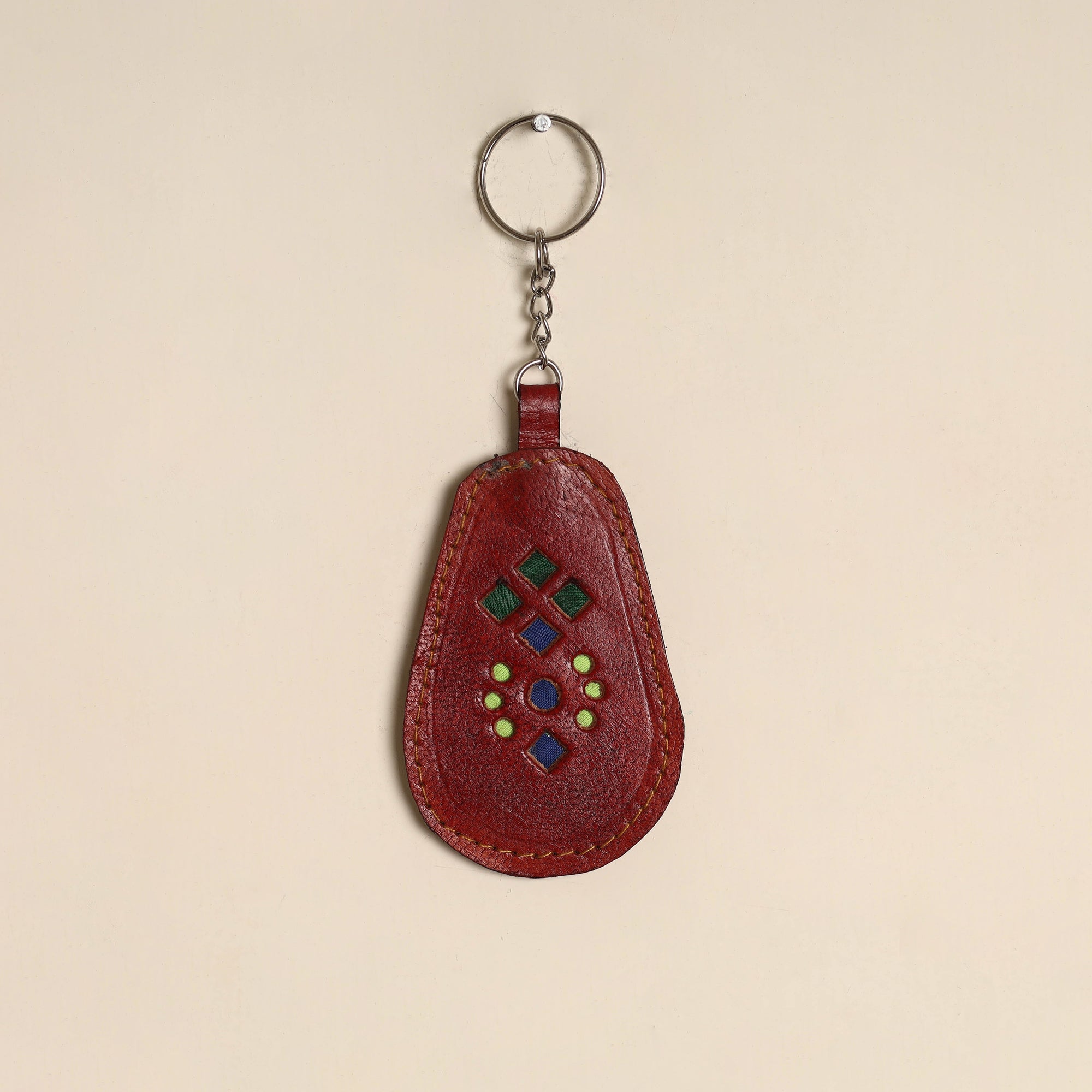 Handcrafted keychain is made by Mohan Marvada using traditional techniques from Kutch district in Gujarat. Crafted from durable leather it features cutwork detailing. This keychain is ideal for everyday use and thoughtful gift.