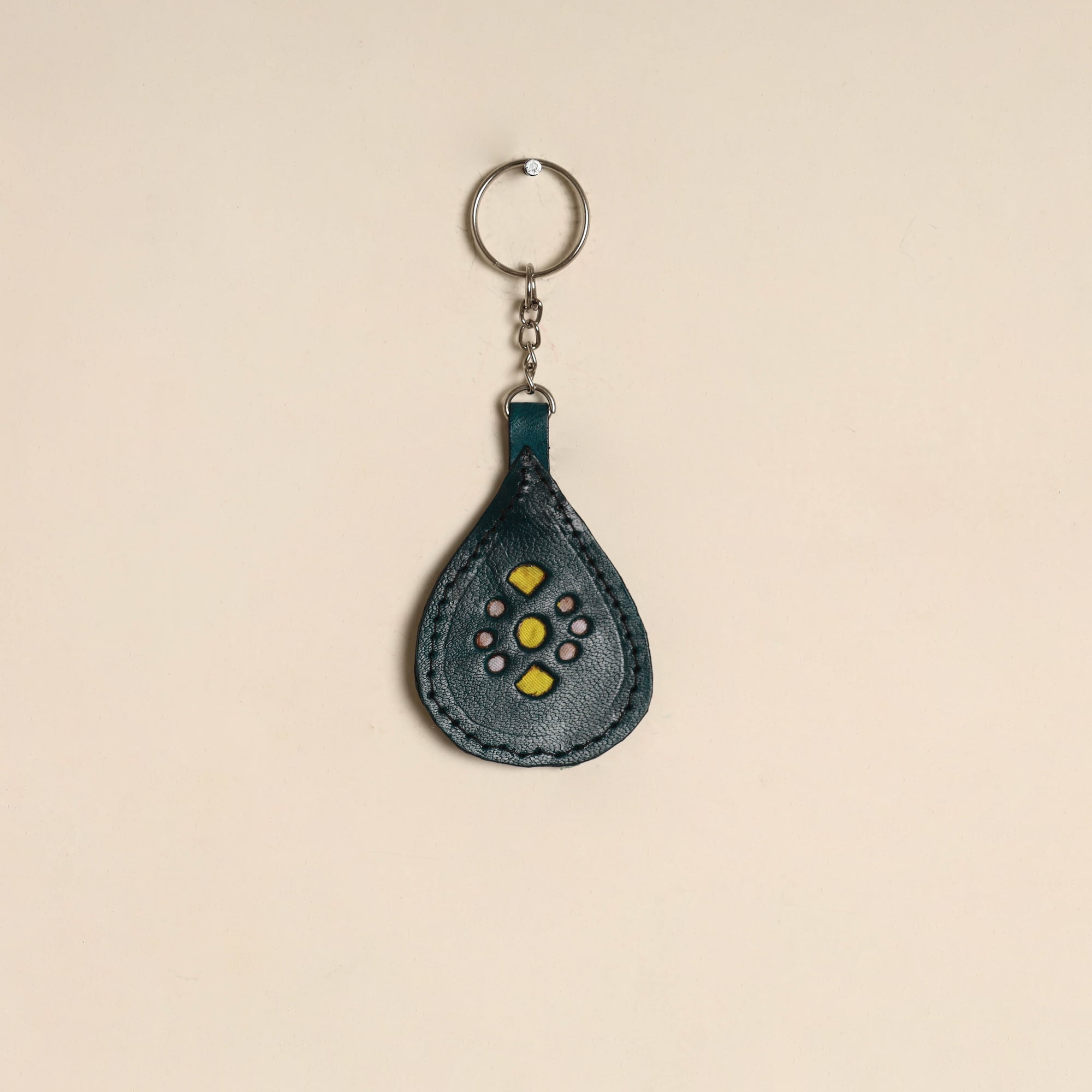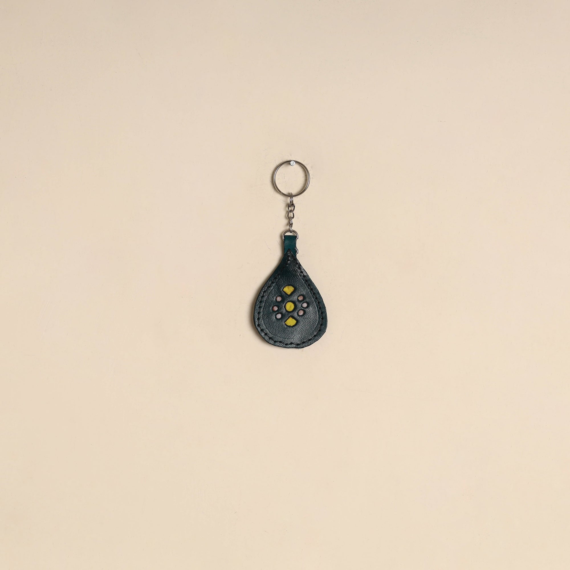 Handcrafted keychain is made by Mohan Marvada using traditional techniques from Kutch district in Gujarat. Crafted from durable leather it features cutwork detailing. This keychain is ideal for everyday use and thoughtful gift.