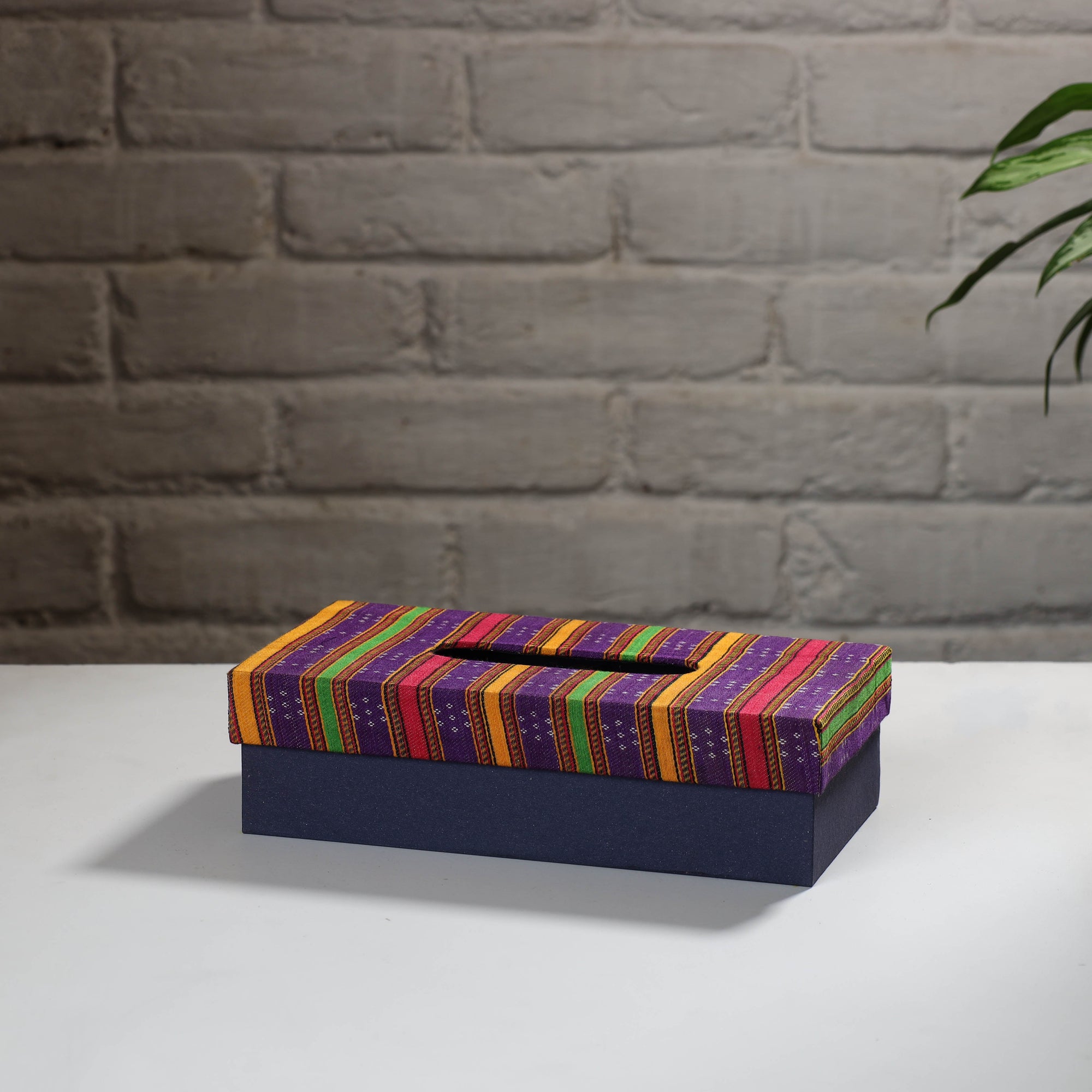 Elevate your decor with this stunning purple handcrafted mashru silk fabric tissue box. Handcrafted by skilled artisans it combines functionality with elegance. Made from durable hardboard and wrapped in handloom mashru silk this decorative tissue box is perfect for storing tissues or paper napkins. Its vibrant texture and eco-friendly craftsmanship reflect India’s rich artisanal heritage. Add a touch of charm to your living space while supporting sustainable, Handcrafted products.