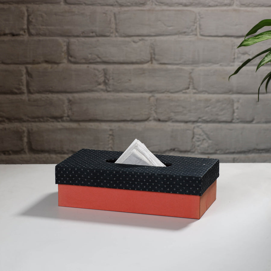 Elevate your decor with this stunning orange handcrafted mashru silk fabric tissue box. Handcrafted by skilled artisans it combines functionality with elegance. Made from durable hardboard and wrapped in handloom mashru silk this decorative tissue box is perfect for storing tissues or paper napkins. Its vibrant texture and eco-friendly craftsmanship reflect India’s rich artisanal heritage. Add a touch of charm to your living space while supporting sustainable, Handcrafted products.