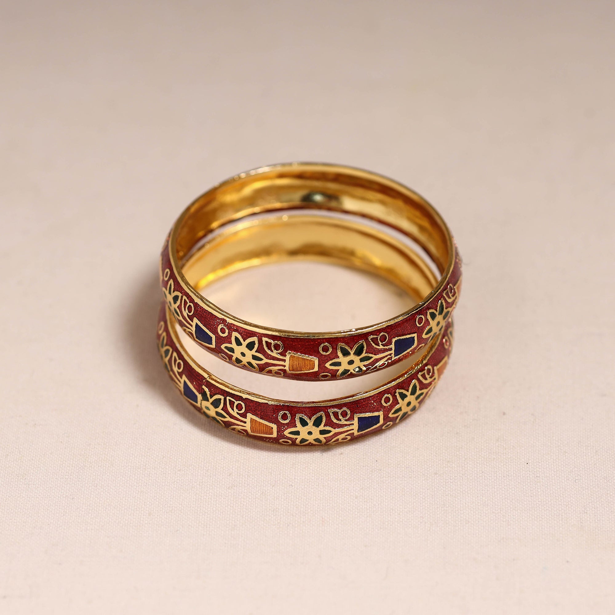 Red - Handcrafted Paka Meenakari Bangles (Set of 2) 286
