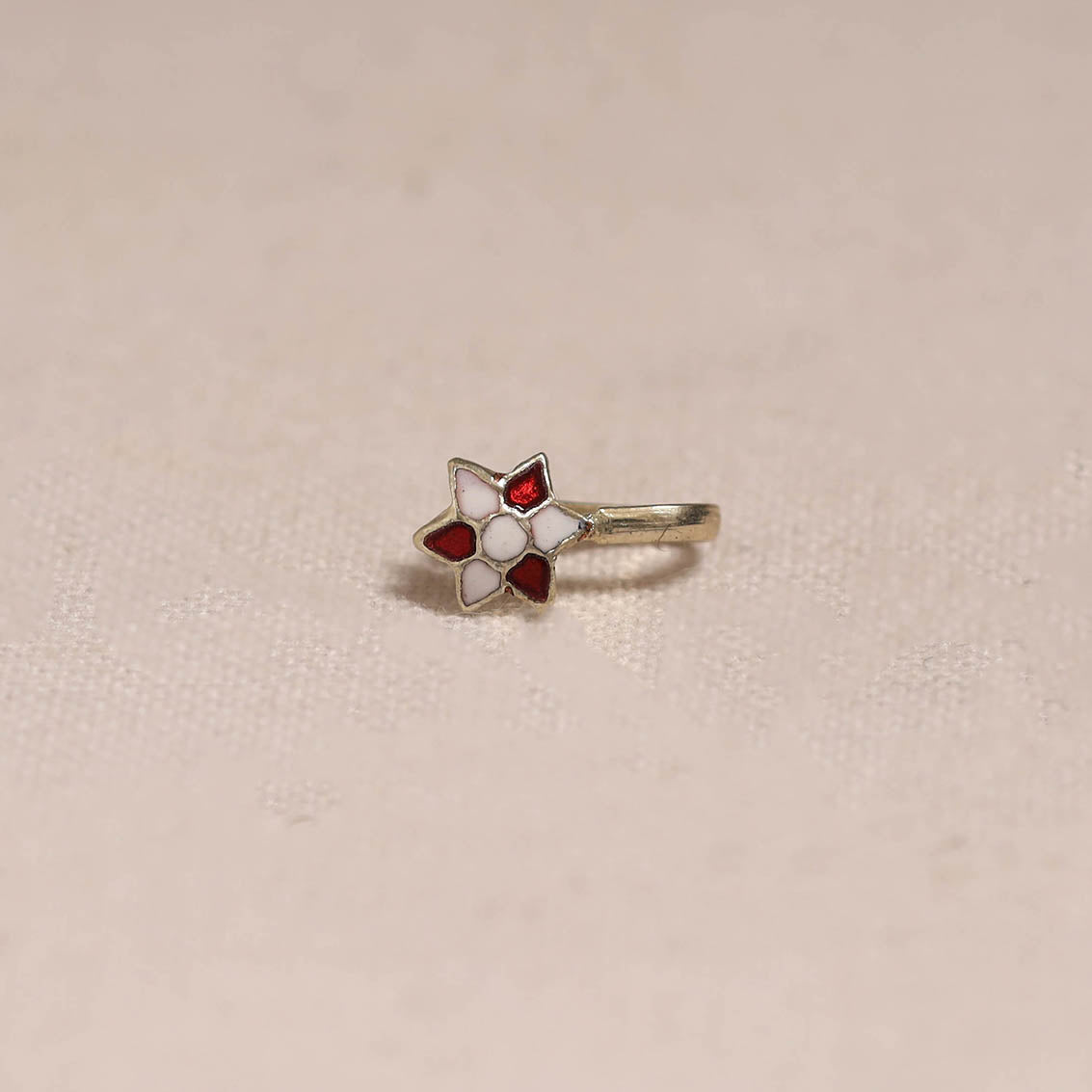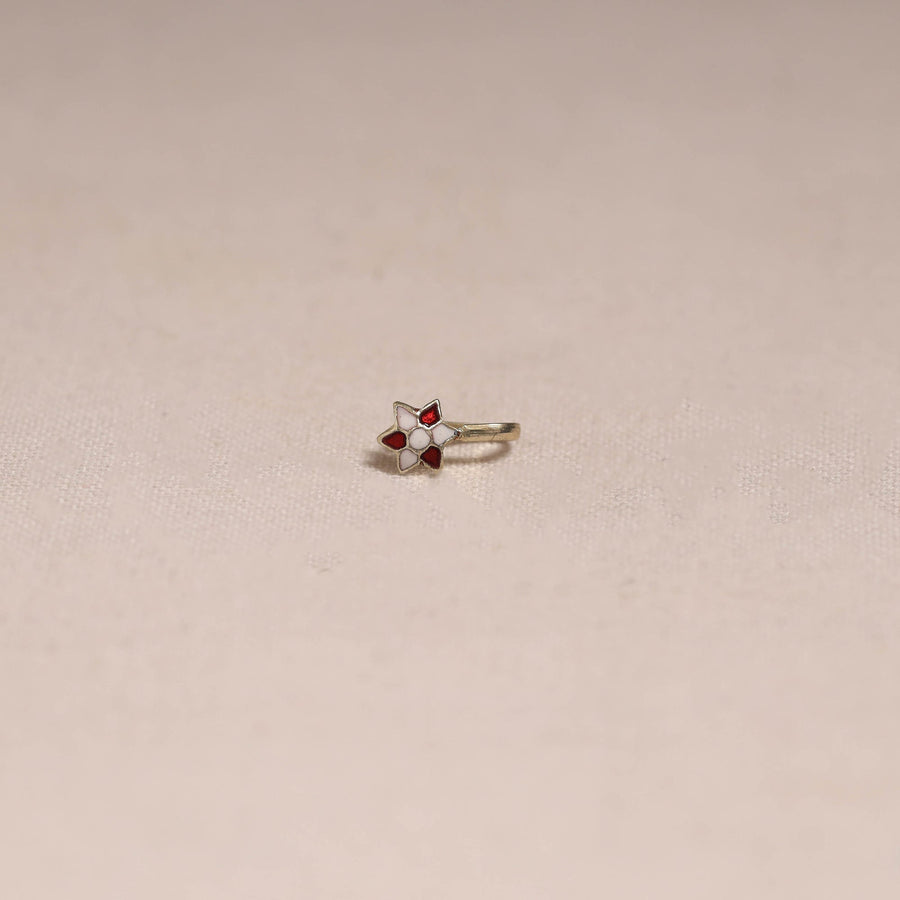 | Material | White handcrafted paka meenakari nosepin by Sukhomoy Mukherjee's. Meticulously crafted from a bronze alloy, this nosepin showcase the ancient art of Meenakari, which involves coloring and ornamenting metal surfaces by fusing vibrant colors into intricate designs. The Mughals invented the art of enamel or meenawork metalcraft, and it was popular with both the Mughals and the Hindu princes of Rajasthan, where it was used for creating precious objects and enriching jewellery. |