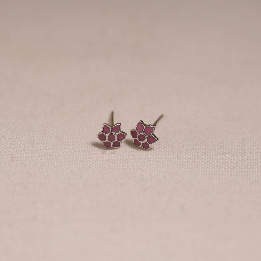 Pink - Handcrafted Paka Meenakari Stud Earrings 09