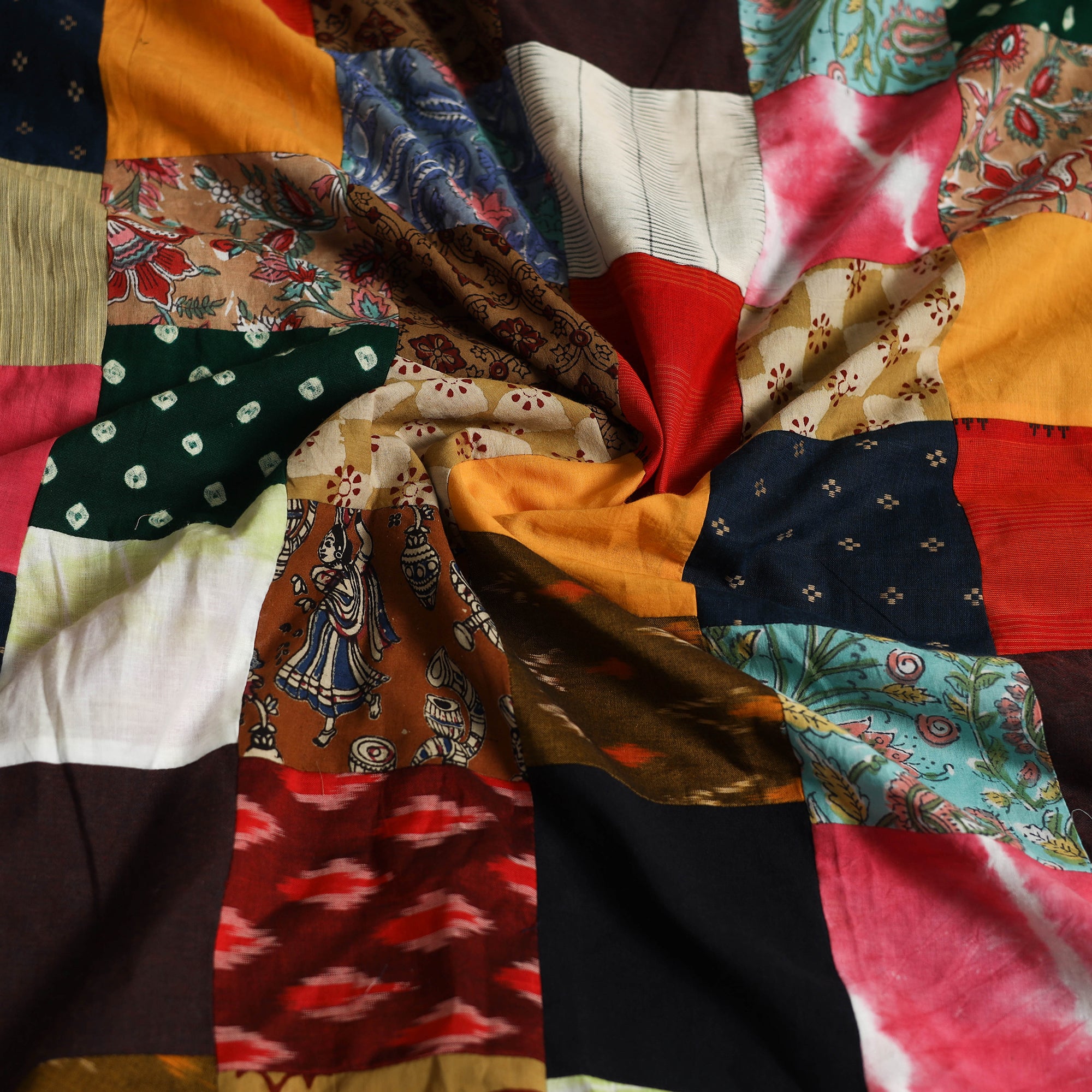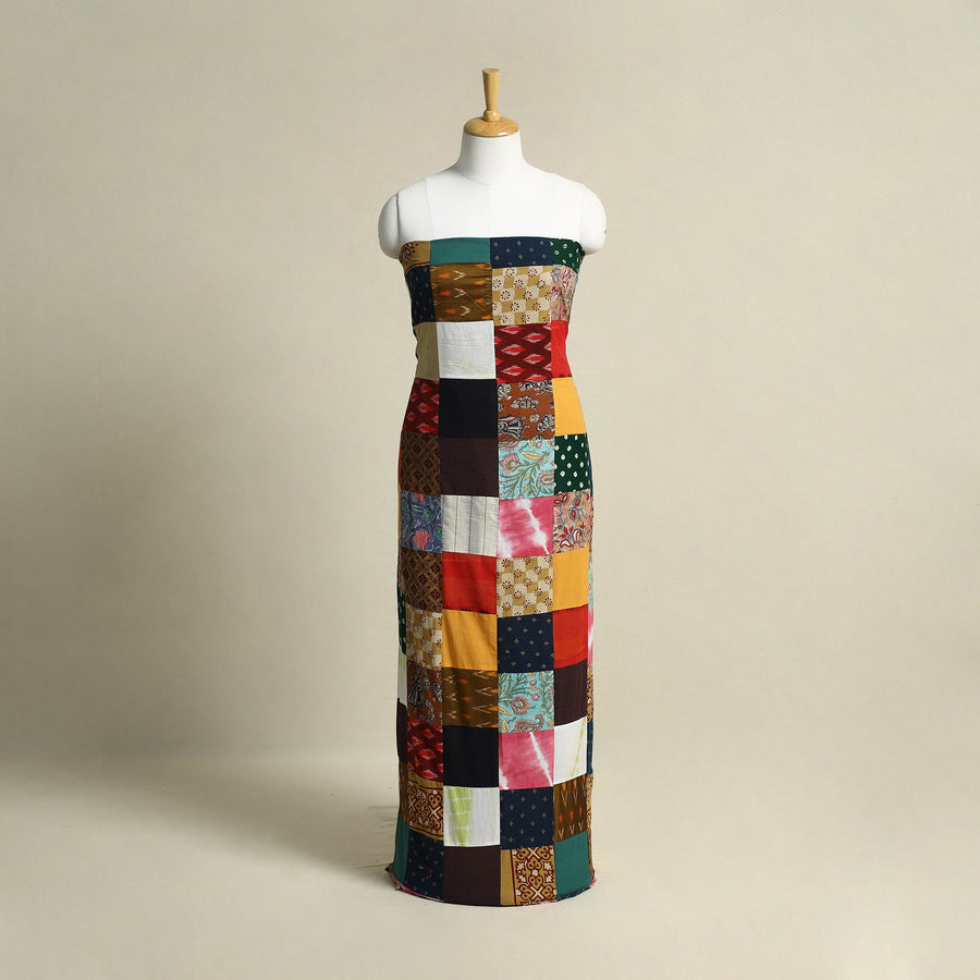Infuse elegance into your outfits with this multicolor tukdi work cotton kurta fabric. Designed using age-old patchwork techniques, it layers different fabric pieces to form one harmonious design. Best suited for creating breezy kurtas, trendy tunics, or fusion-style tops.