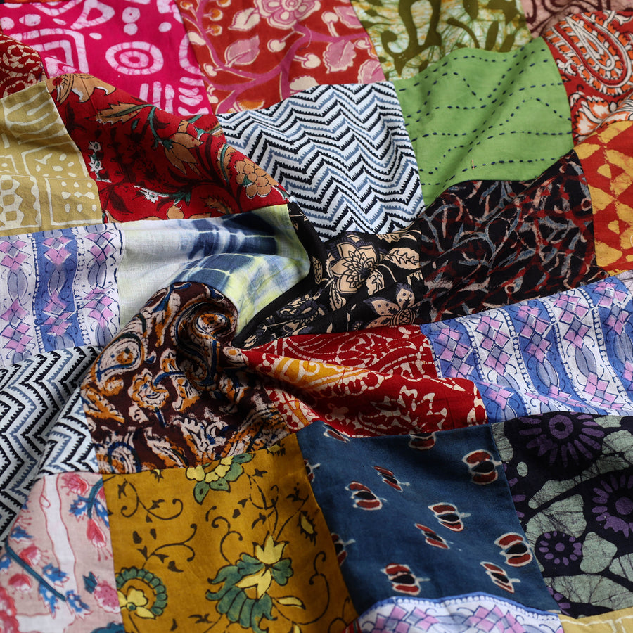 Multicolor - Handcrafted Patchwork Cotton Unstitched Kurta Material (3.2m) 41