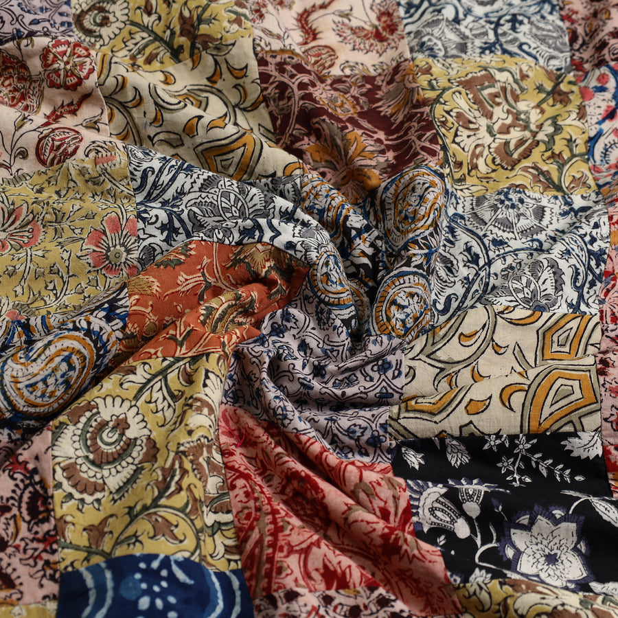 Multicolor - Handcrafted Patchwork Cotton Unstitched Kurta Material (3.2m) 57