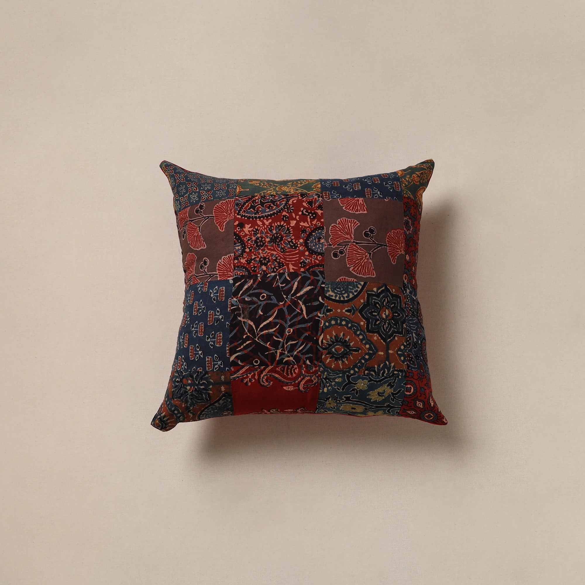 Handcrafted patchwork cushion cover, crafted from cotton and traditional Indian handmade textiles. It blends artistry with comfort, making it perfect for your sofa, bed or lounge area.