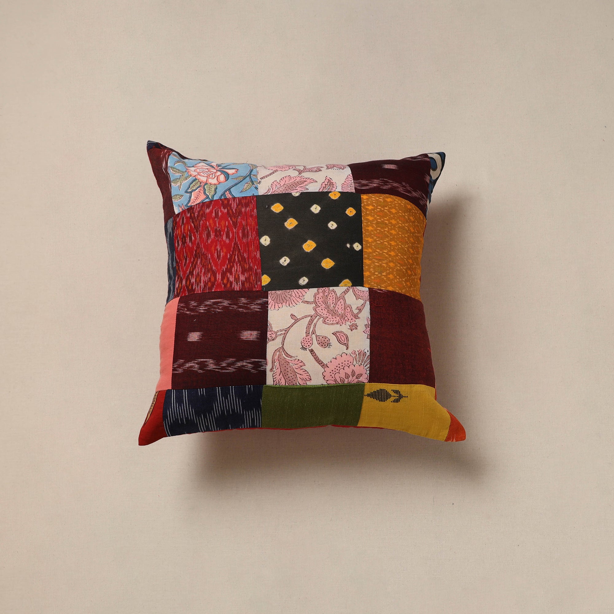 Handcrafted patchwork cushion cover, crafted from cotton and traditional Indian handmade textiles. It blends artistry with comfort, making it perfect for your sofa, bed or lounge area.