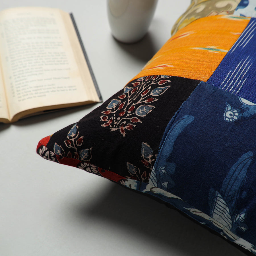 Material Handcrafted multicolor  patchwork cushion cover in cotton. its lightweight, durable and ideal for daily use. Perfect for enhancing sofas, chairs, or beds, this cushion cover brings cultural elegance to your living space.