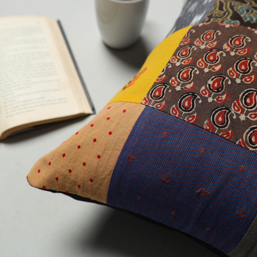 Material Handcrafted multicolor patchwork cushion cover in cotton. its lightweight, durable and ideal for daily use. Perfect for enhancing sofas, chairs, or beds, this cushion cover brings cultural elegance to your living space.