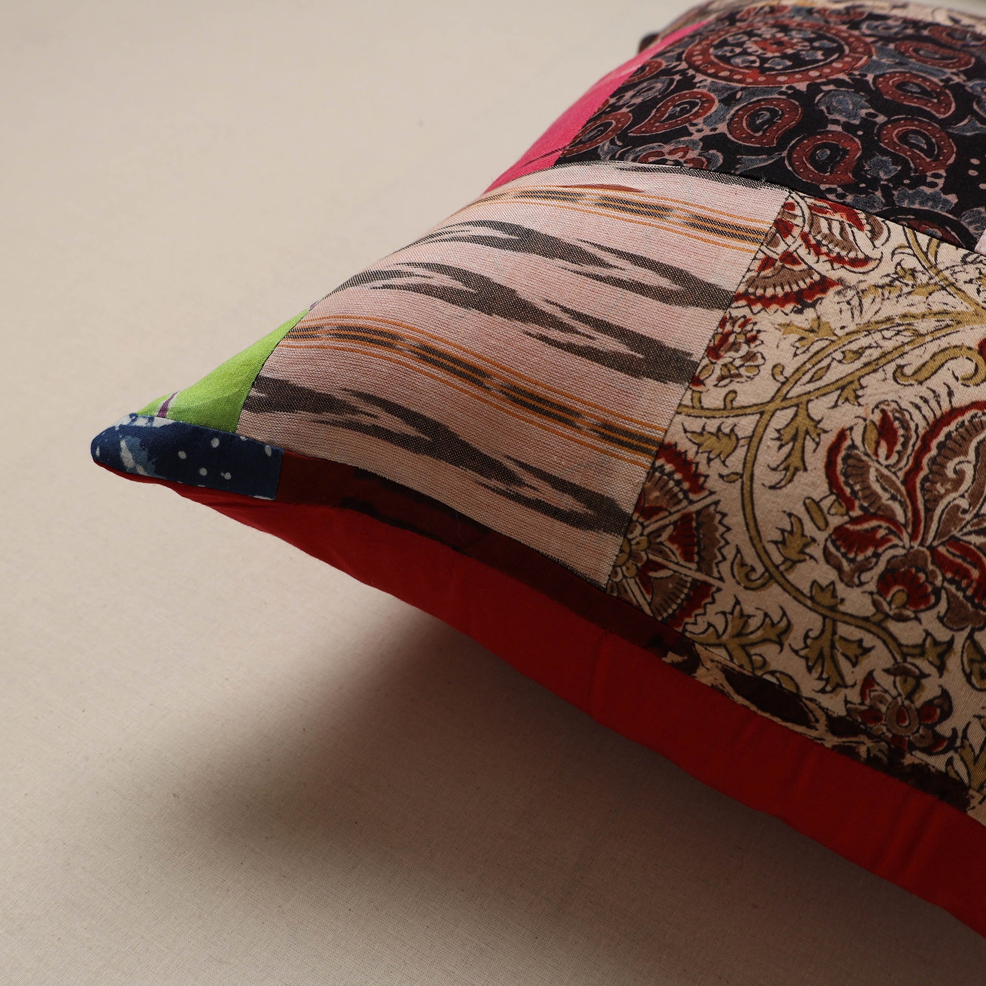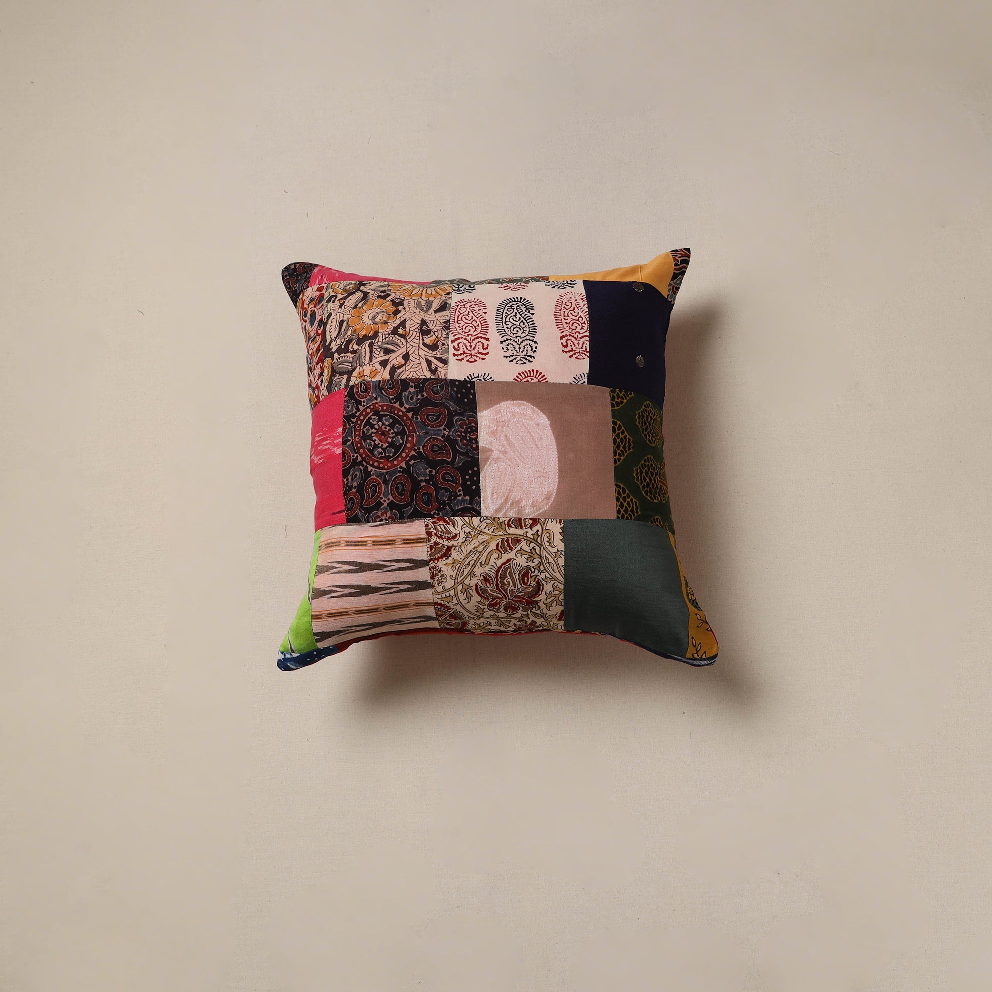 Handcrafted patchwork cushion cover, crafted from cotton and traditional Indian handmade textiles. It blends artistry with comfort, making it perfect for your sofa, bed or lounge area.