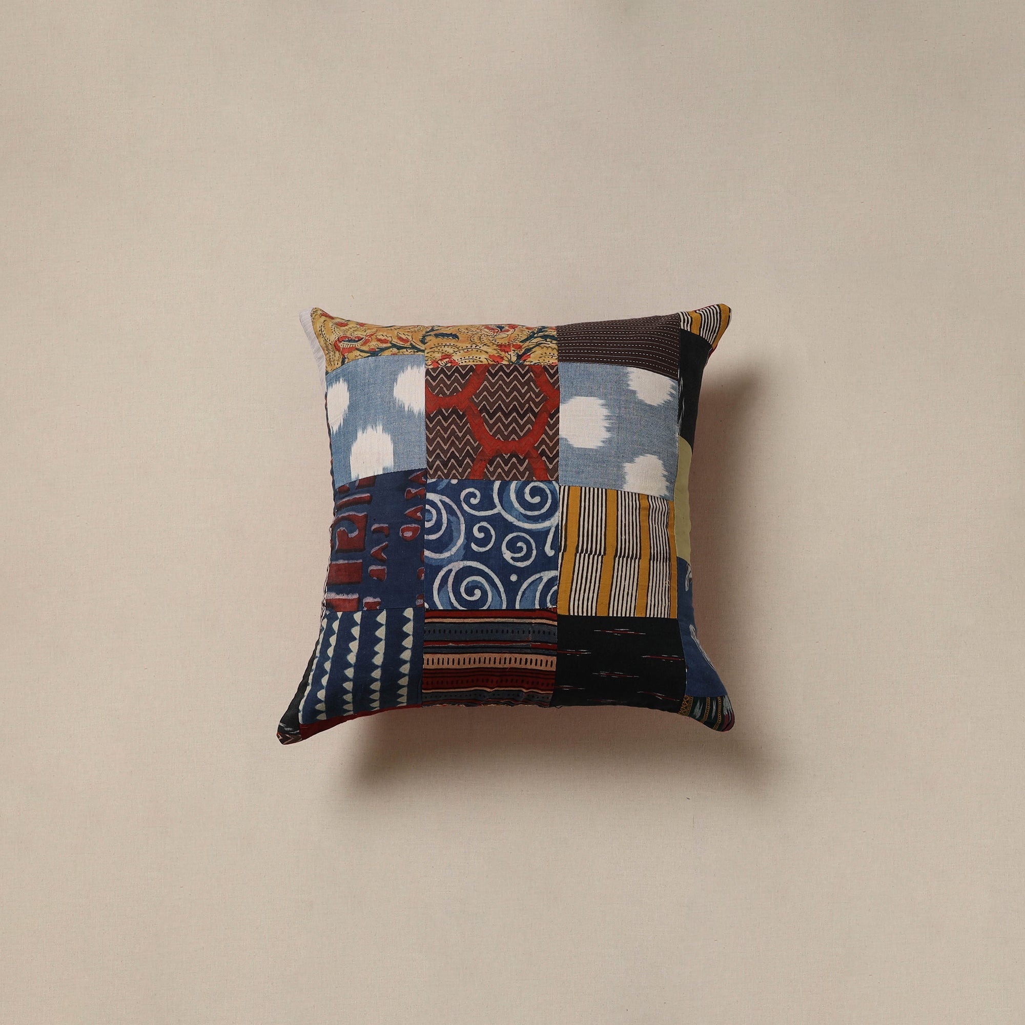 Handcrafted patchwork cushion cover, crafted from cotton and traditional Indian handmade textiles. It blends artistry with comfort, making it perfect for your sofa, bed or lounge area.
