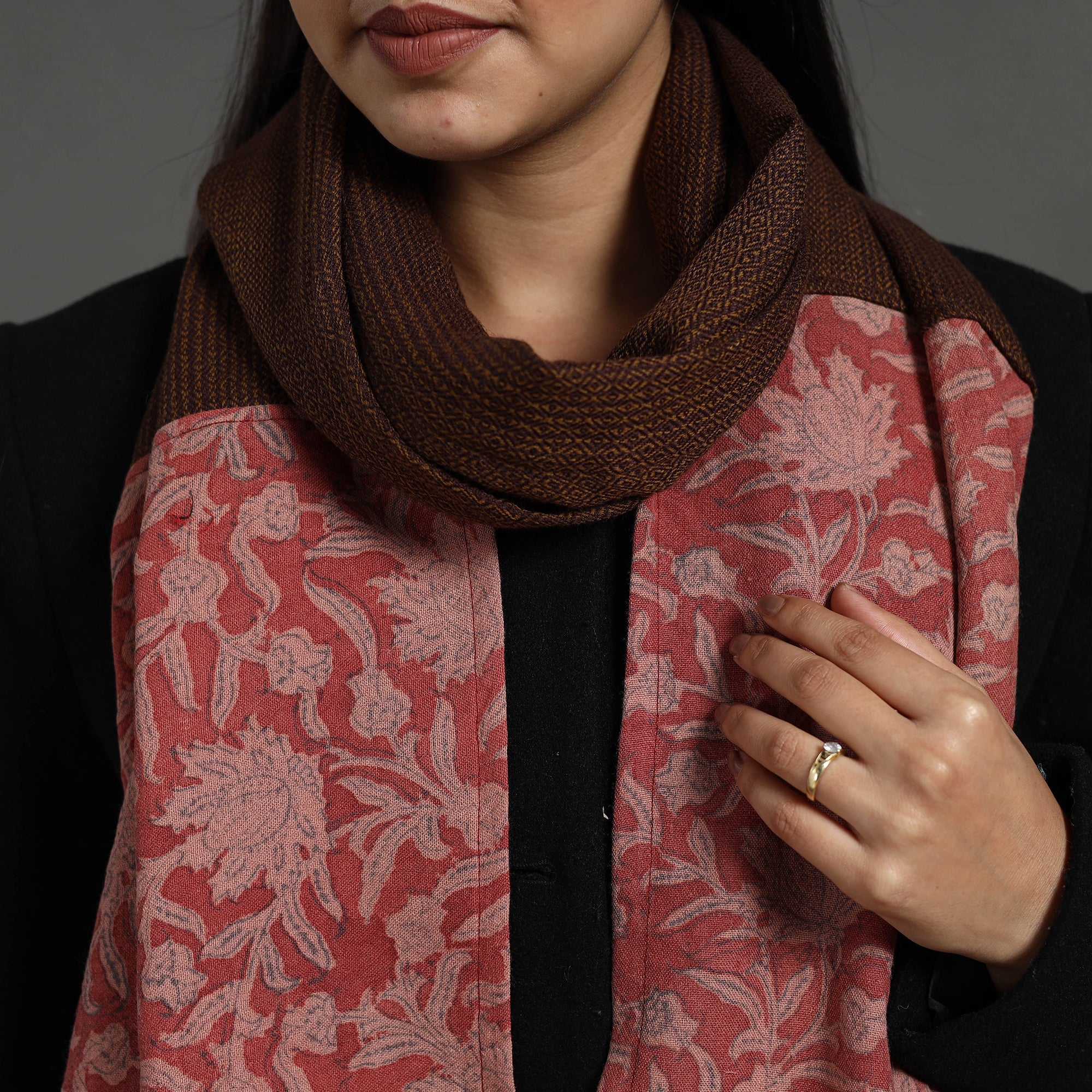 Handcrafted patchwork red woollen stole for women is a perfect blend of softness, durability, and eco-friendliness. crafted with handmade textiles of India. Ideal for the winter season, it provides cozy warmth while adding a unique, stylish touch to any outfit.