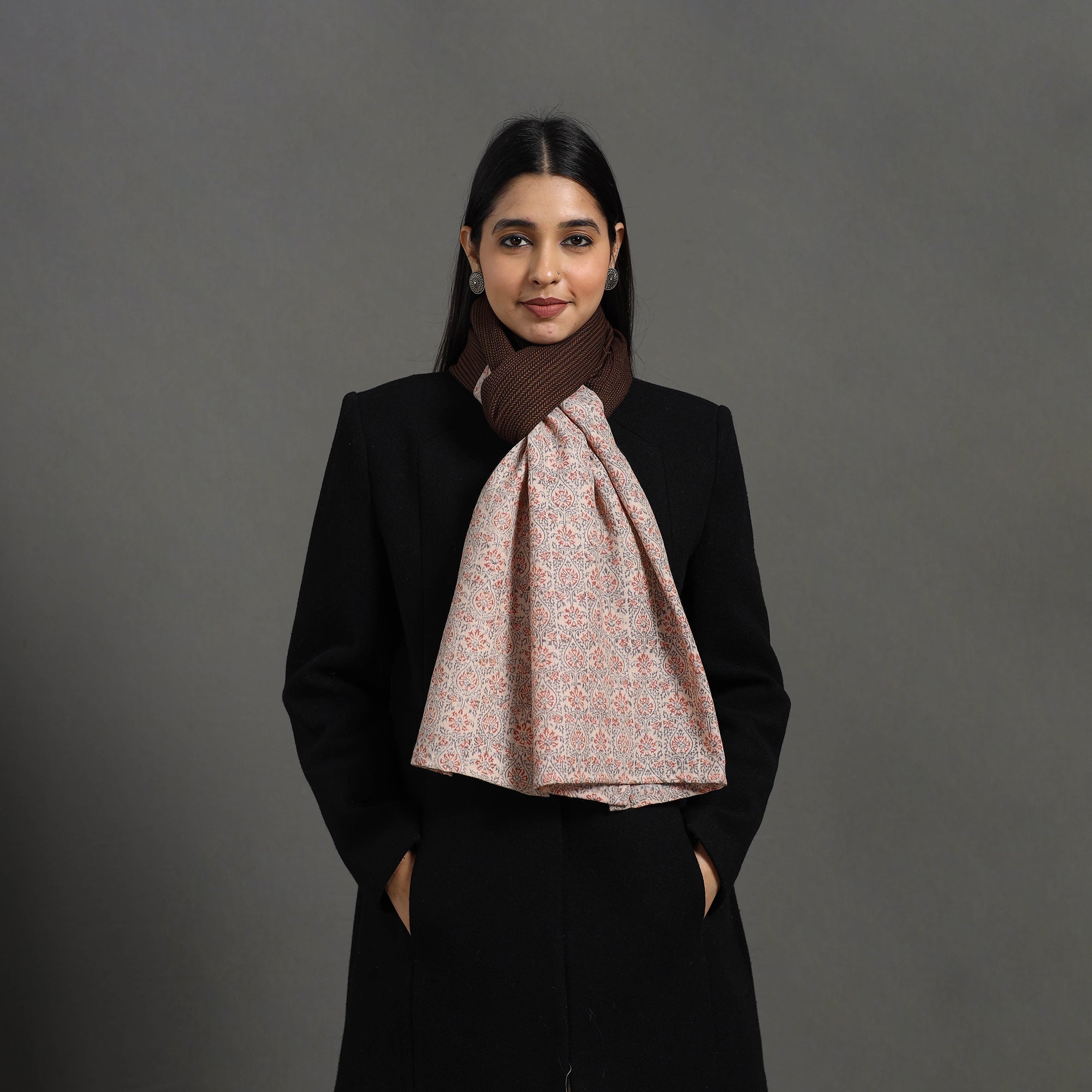 Handcrafted beige patchwork woollen stole for women is a perfect blend of softness, durability, and eco-friendliness. crafted with handmade textiles of India. Ideal for the winter season, it provides cozy warmth while adding a unique, stylish touch to any outfit.