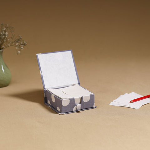 This purple printed card holder with slips is made from durable cardboard and covered with beautiful block printed cotton fabric. The handmade paper adds a soft texture, giving it a stylish and unique look. Perfect for keeping your cards, notes, or small papers organized, it’s a functional and decorative addition to any desk or workspace.