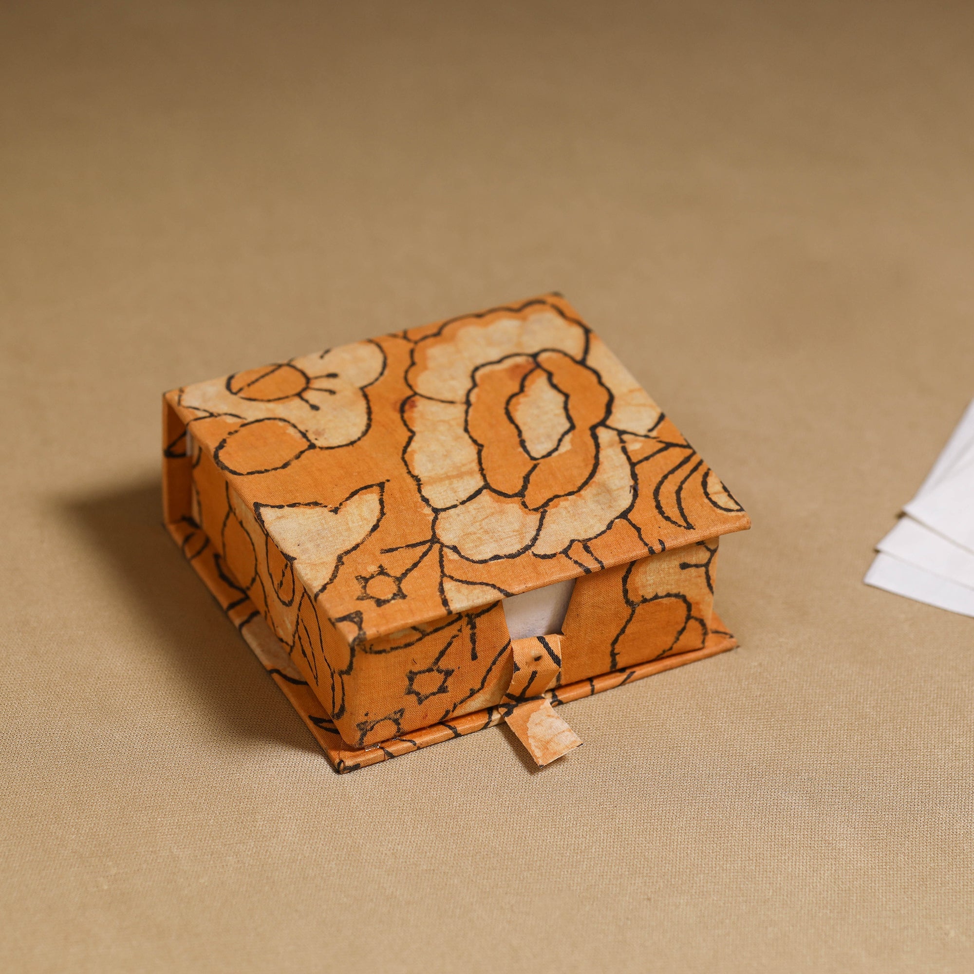 This orange printed card holder with slips is made from durable cardboard and covered with beautiful block printed cotton fabric. The handmade paper adds a soft texture, giving it a stylish and unique look. Perfect for keeping your cards, notes, or small papers organized, it’s a functional and decorative addition to any desk or workspace.