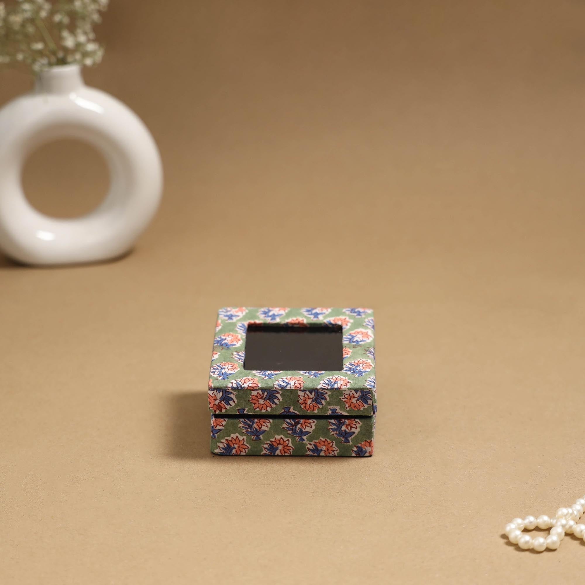 Green - Handcrafted Printed Fabric Ring/Earring Box 35