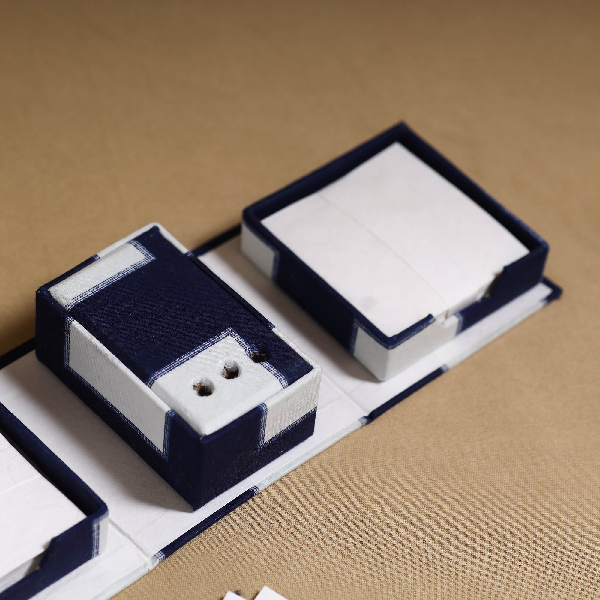 Handcrafted black printed stationery kit is designed to keep your workspace neat, creative, and complete. Perfect for students and professionals, it includes all the right essentials for daily use. Made from durable cardboard and covered with block printed cotton fabric, it’s easy to carry, elegant in look and adds charm to any home or office desk.