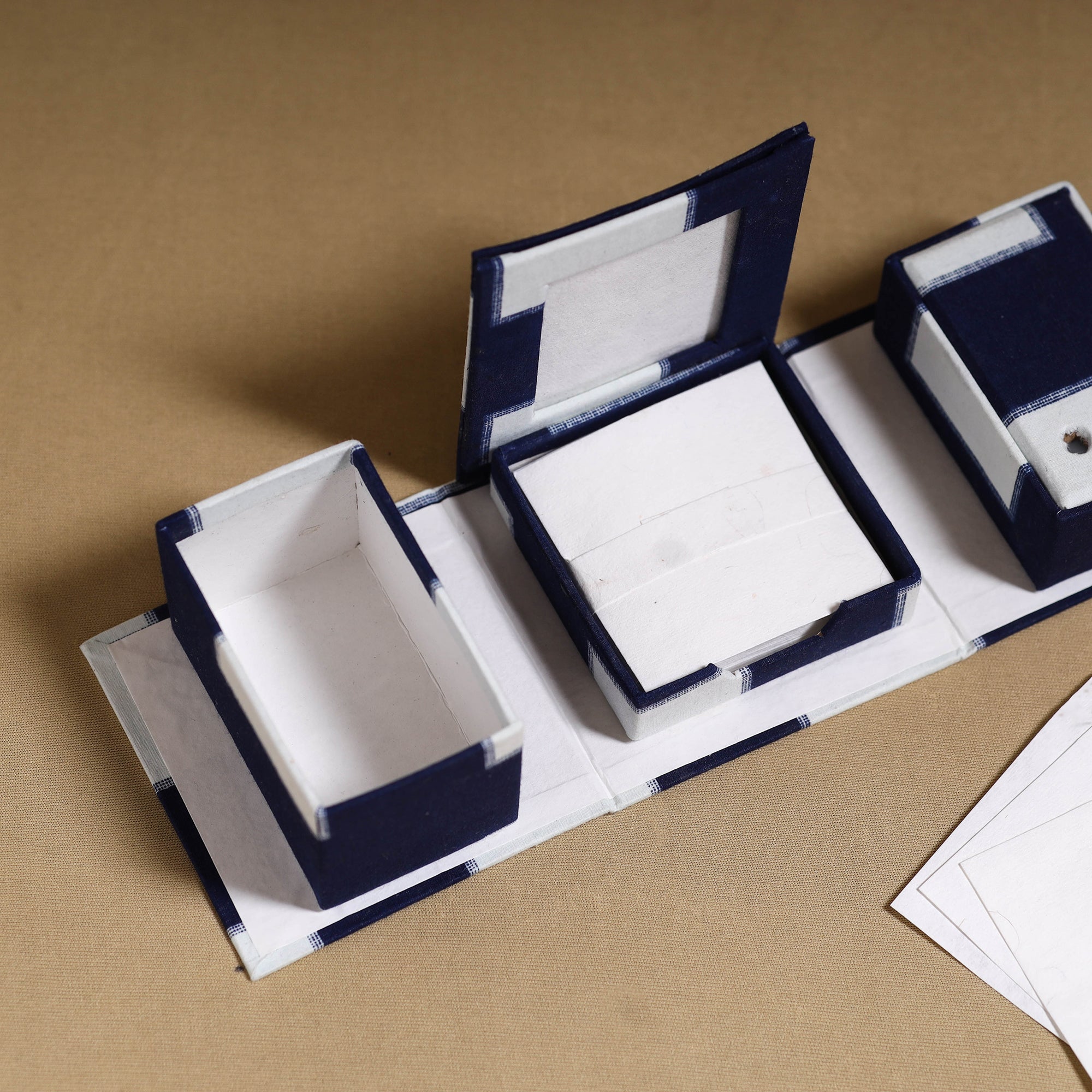 | Material | Handcrafted black printed stationery kit is designed to keep your workspace neat, creative, and complete. Perfect for students and professionals, it includes all the right essentials for daily use. Made from durable cardboard and covered with block printed cotton fabric, it’s easy to carry, elegant in look and adds charm to any home or office desk.
