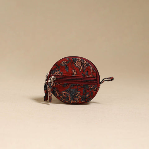 Handcrafted quilted red ajrakh block printed fabric suneeta coin pouch is developed by iTokri in collaboration with Chhoti Si Asha. Compact and round in shape, it is designed to store coins, earbuds, folded notes, and small jewellery. The quilted structure helps maintain shape while protecting contents. It features a smooth zip closure for secure storage. Soft and easy to carry, it fits neatly into bags or pockets, while the side loop allows quick handling or easy attachment.
