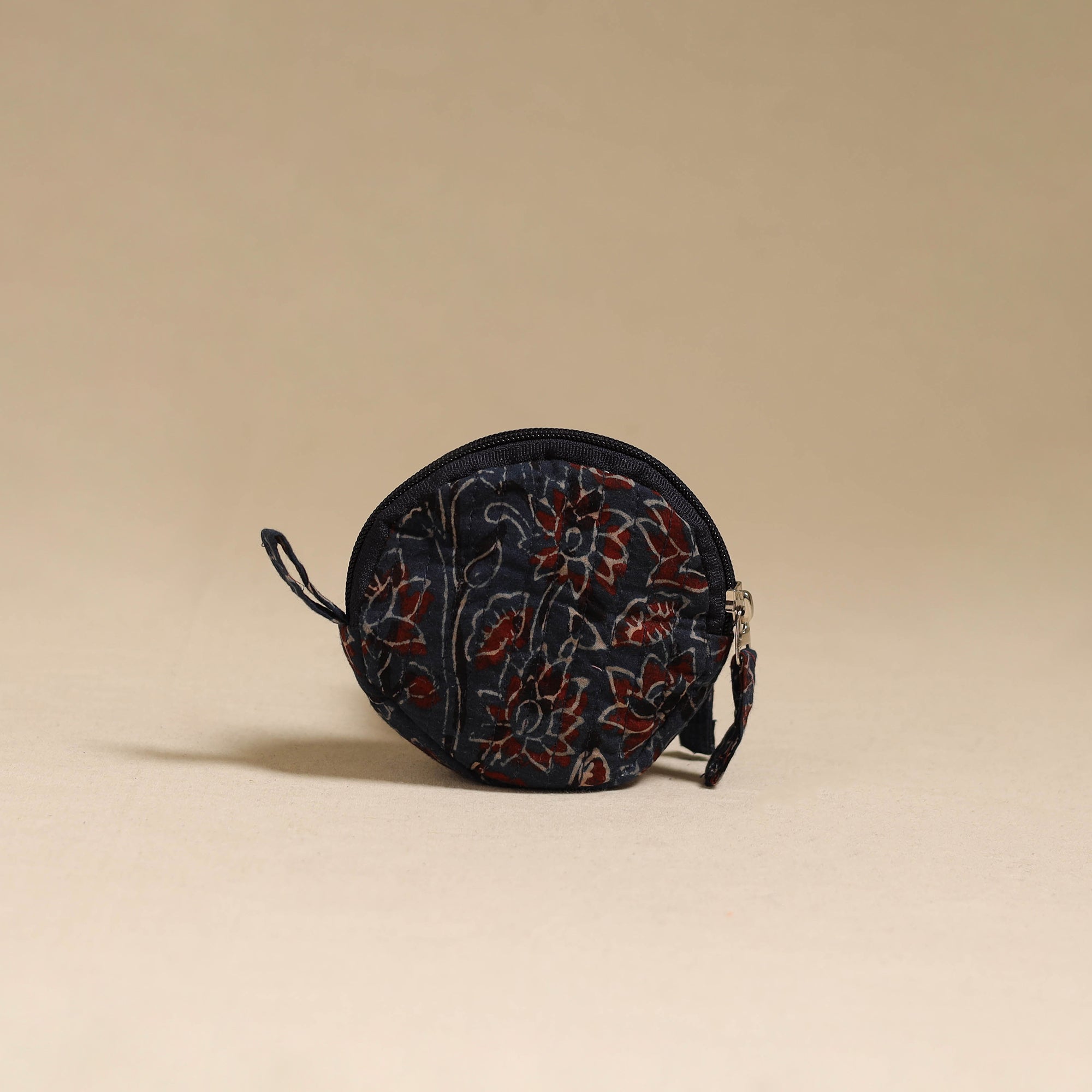 | Material | Handcrafted quilted blue ajrakh block printed fabric suneeta coin pouch is developed by iTokri in collaboration with Chhoti Si Asha. Compact and round in shape, it is designed to store coins, earbuds, folded notes, and small jewellery. The quilted structure helps maintain shape while protecting contents. It features a smooth zip closure for secure storage. Soft and easy to carry, it fits neatly into bags or pockets, while the side loop allows quick handling or easy attachment. |