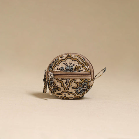 | Material | Handcrafted quilted beige ajrakh block printed fabric suneeta coin pouch is developed by iTokri in collaboration with Chhoti Si Asha. Compact and round in shape, it is designed to store coins, earbuds, folded notes, and small jewellery. The quilted structure helps maintain shape while protecting contents. It features a smooth zip closure for secure storage. Soft and easy to carry, it fits neatly into bags or pockets, while the side loop allows quick handling or easy attachment. |