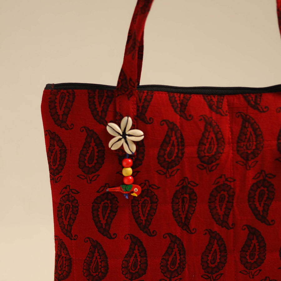 Red handcrafted quilted cotton hand bag. This hand bag with a zip-lock main closure, providing ample space for your essentials. The foam layer lining ensures durability and protection. Enhance your style with this unique, functional accessory.