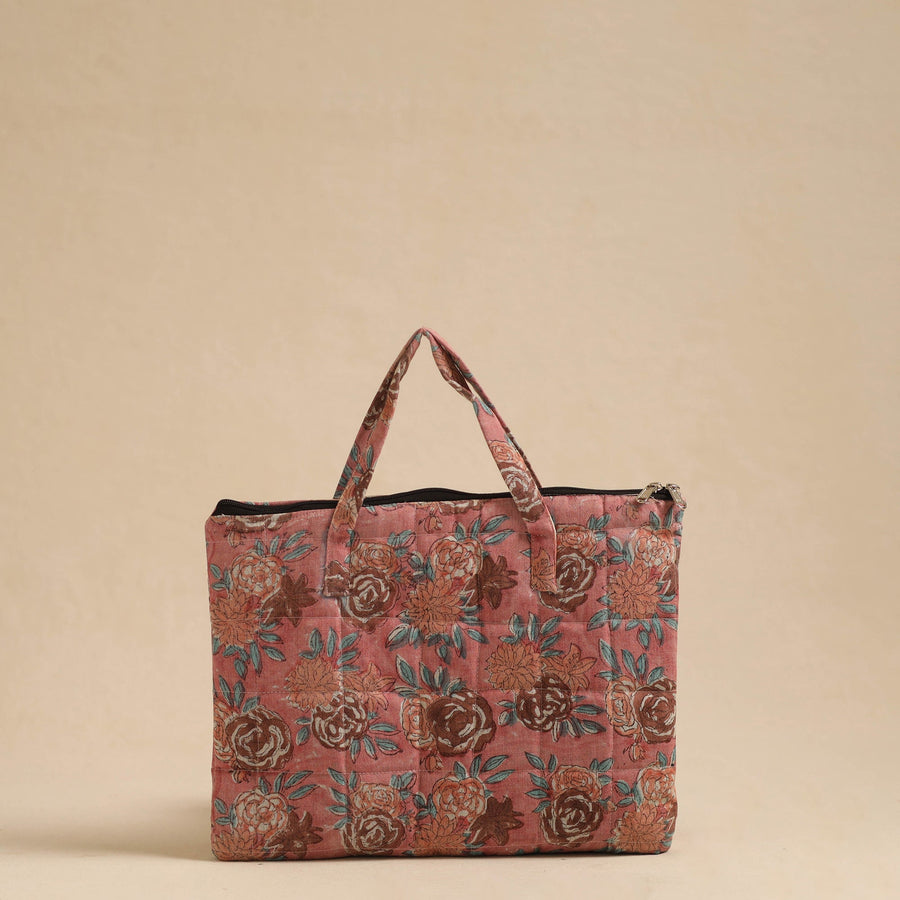 Pink handcrafted quilted cotton hand bag. This hand bag with a zip-lock main closure, providing ample space for your essentials. The foam layer lining ensures durability and protection. Enhance your style with this unique, functional accessory.