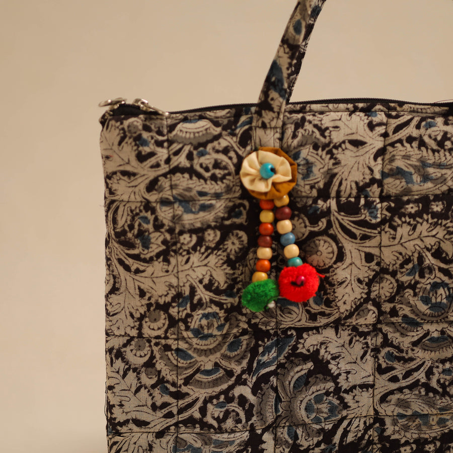 Black handcrafted quilted cotton hand bag. This hand bag with a zip-lock main closure, providing ample space for your essentials. The foam layer lining ensures durability and protection. Enhance your style with this unique, functional accessory.