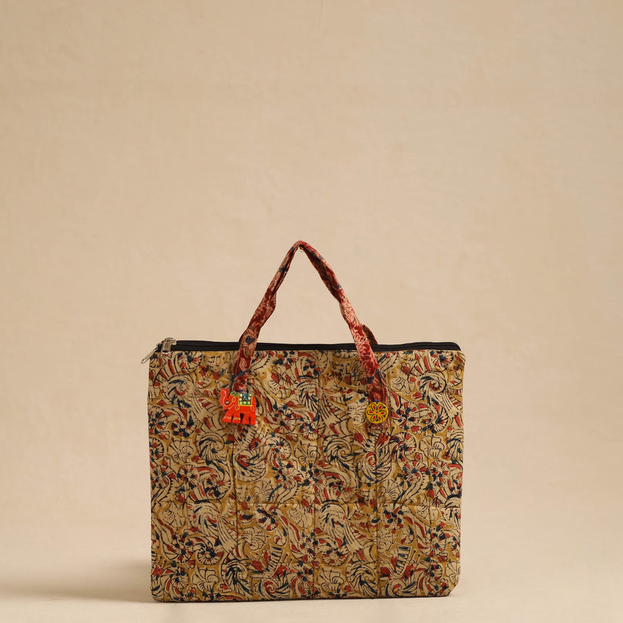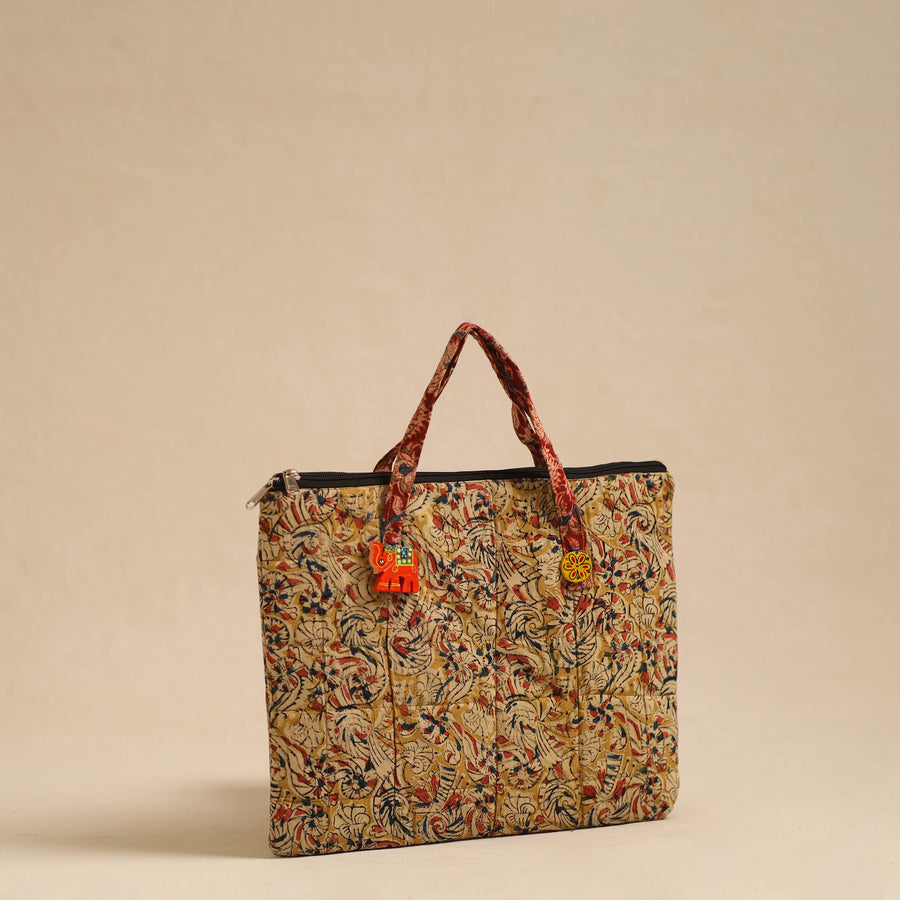 Beige handcrafted quilted cotton hand bag. This hand bag with a zip-lock main closure, providing ample space for your essentials. The foam layer lining ensures durability and protection. Enhance your style with this unique, functional accessory.