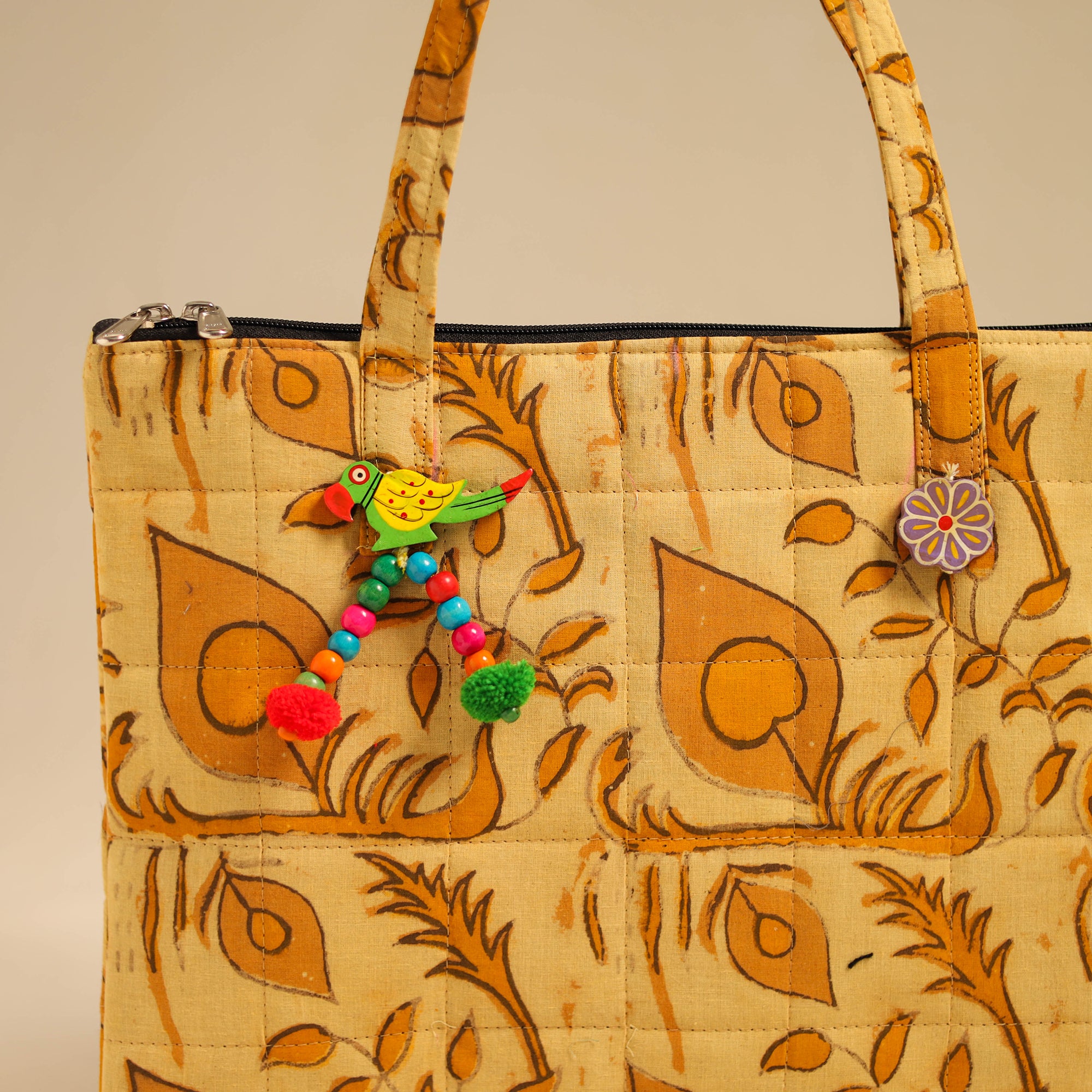Yellow handcrafted quilted cotton handbag. This handbag with a zip-lock main closure, providing ample space for your essentials. The foam layer lining ensures durability and protection. Enhance your style with this unique, functional accessory. Brighten up your day!