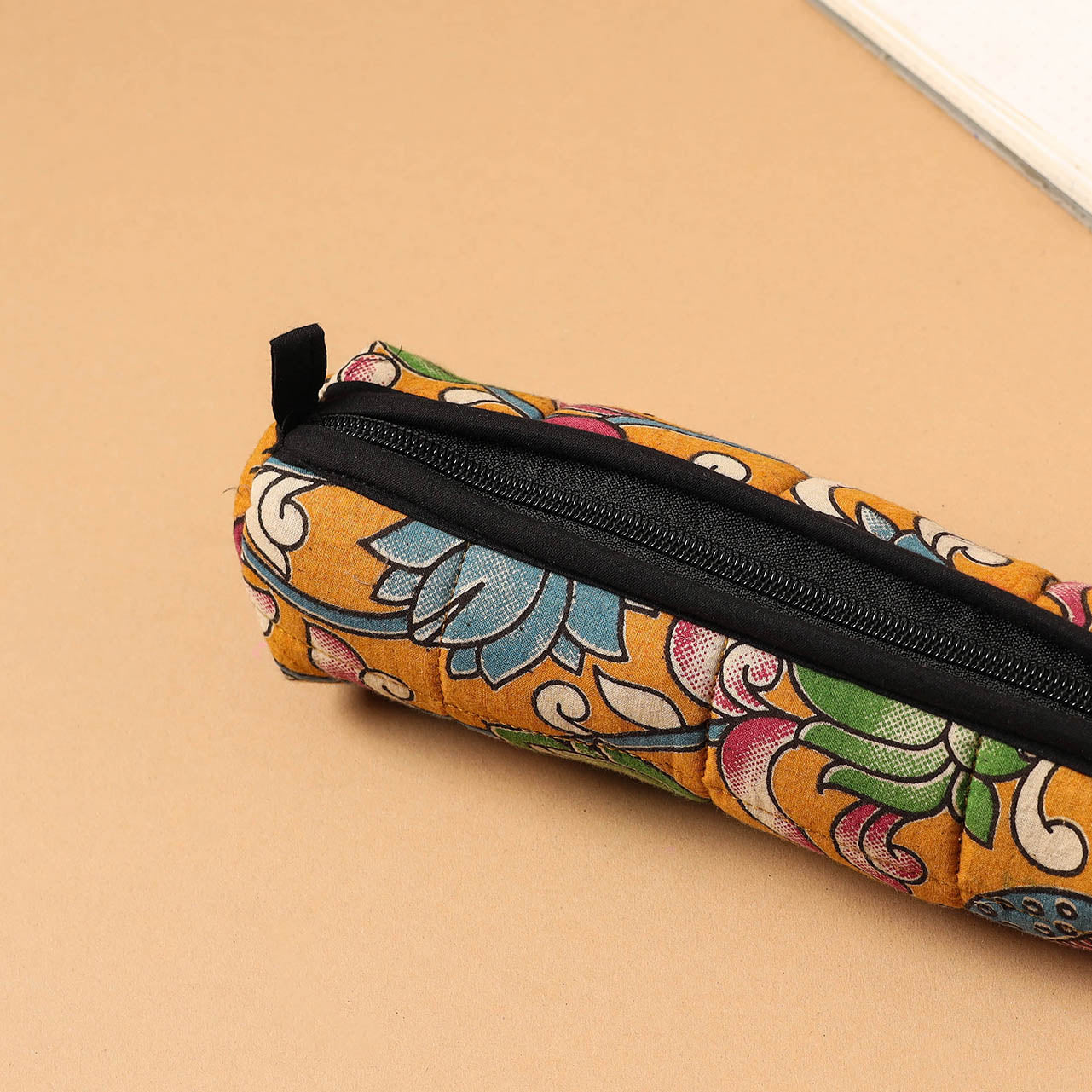 Experience the perfect blend of artistry and utility with our yellow handcrafted quilted cotton pencil pouch. This pouch is made from cotton fabric with a quilted filling. Safely store your pencils, pens, and other essentials in style.