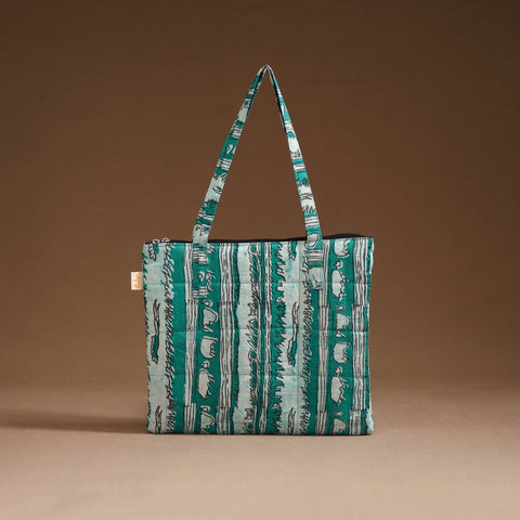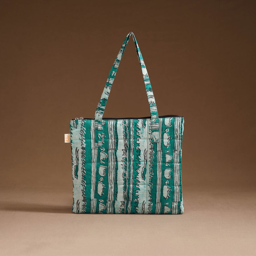 Handcrafted quilted handbag in cotton featuring a secure zippered closure and a spacious interior for your everyday essentials. The soft foam lining enhances durability and protection, making it perfect for daily use or travel.