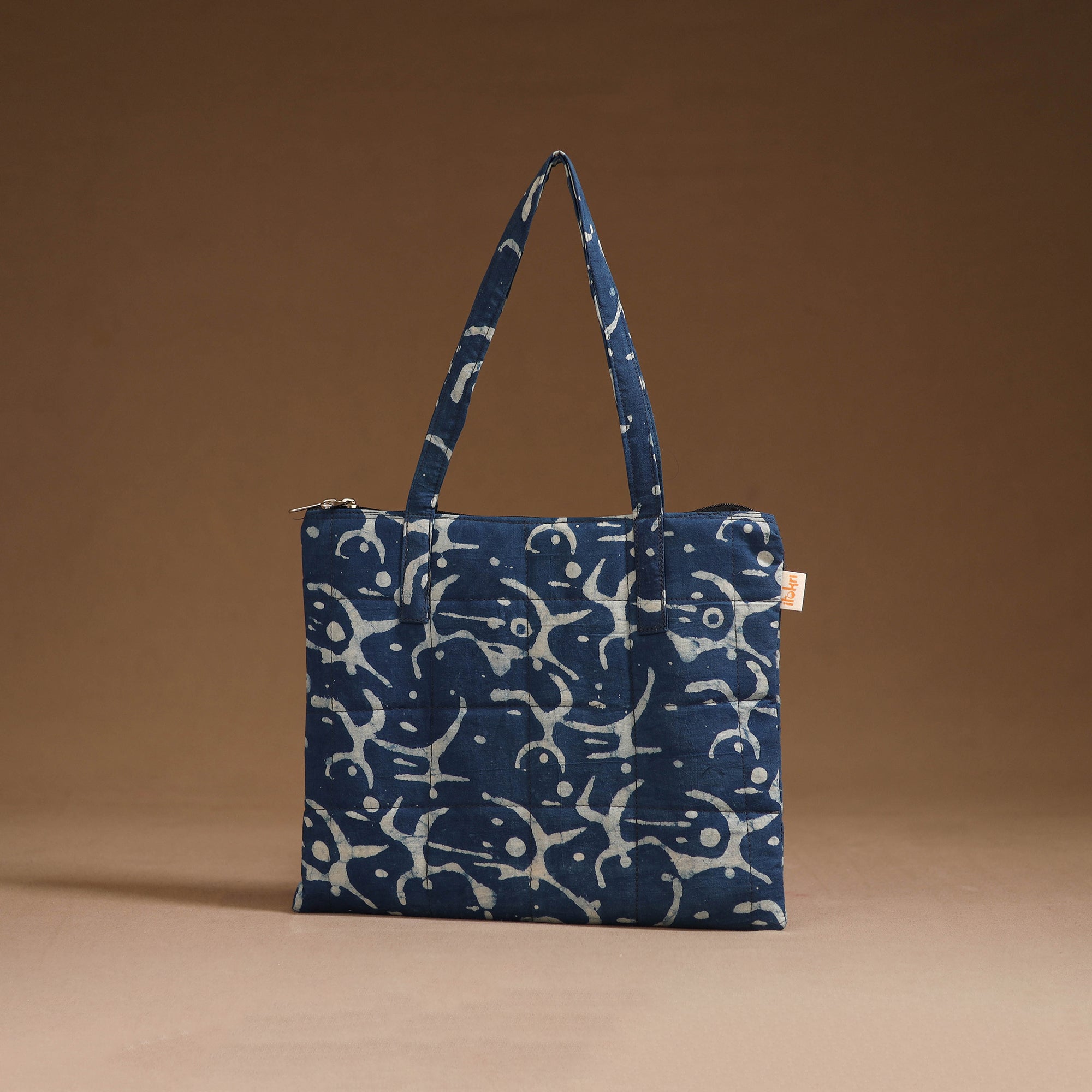 Handcrafted quilted handbag in cotton featuring a secure zippered closure and a spacious interior for your everyday essentials. The soft foam lining enhances durability and protection, making it perfect for daily use or travel.