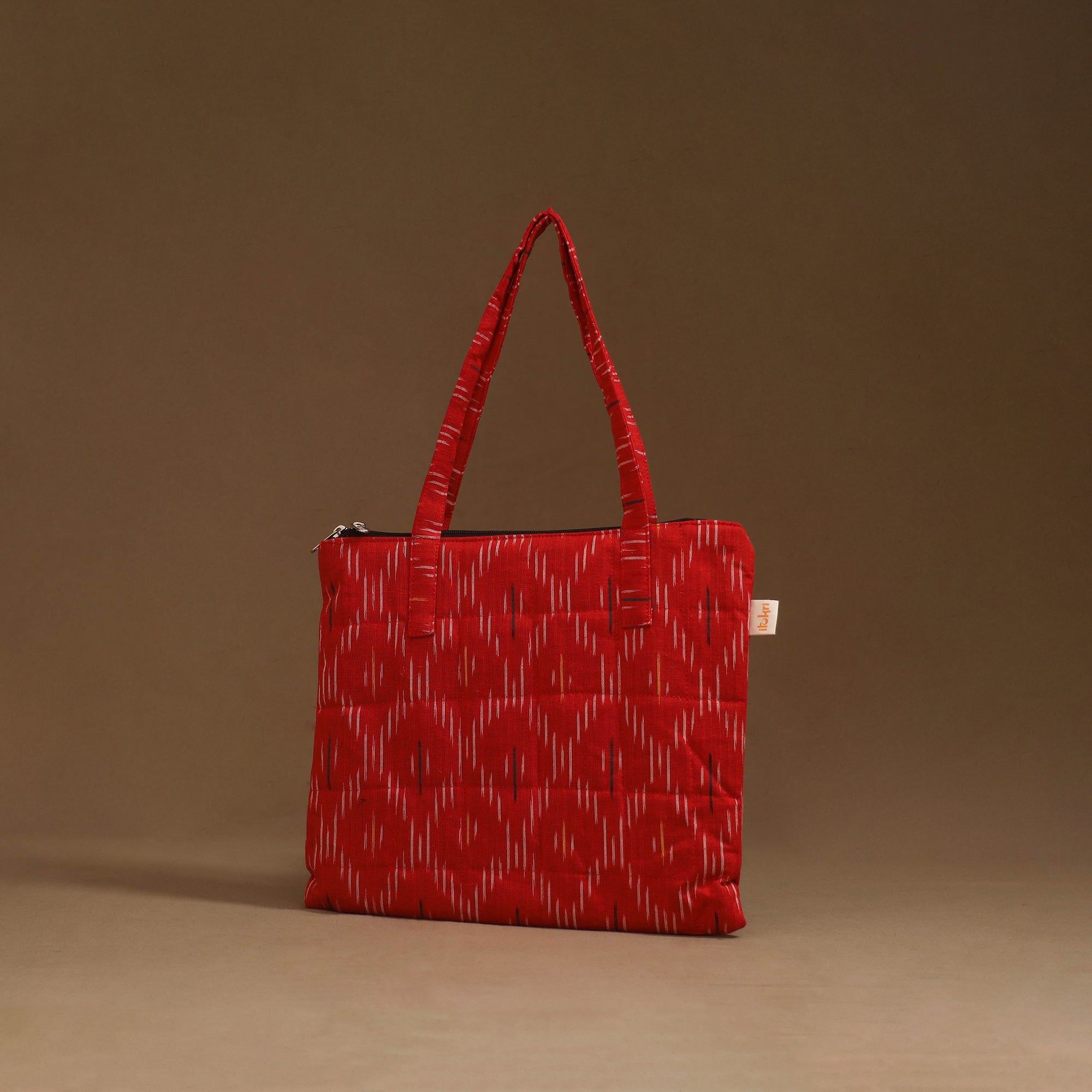 Handcrafted quilted handbag in cotton featuring a secure zippered closure and a spacious interior for your everyday essentials. The soft foam lining enhances durability and protection, making it perfect for daily use or travel.