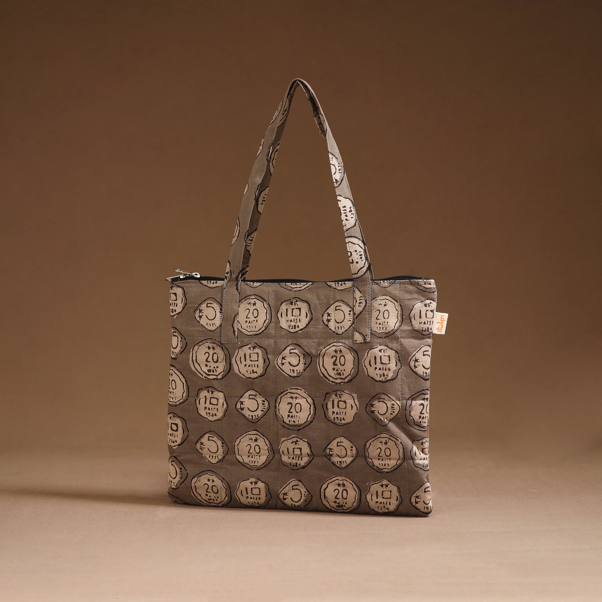 Handcrafted quilted handbag in cotton featuring a secure zippered closure and a spacious interior for your everyday essentials. The soft foam lining enhances durability and protection, making it perfect for daily use or travel.