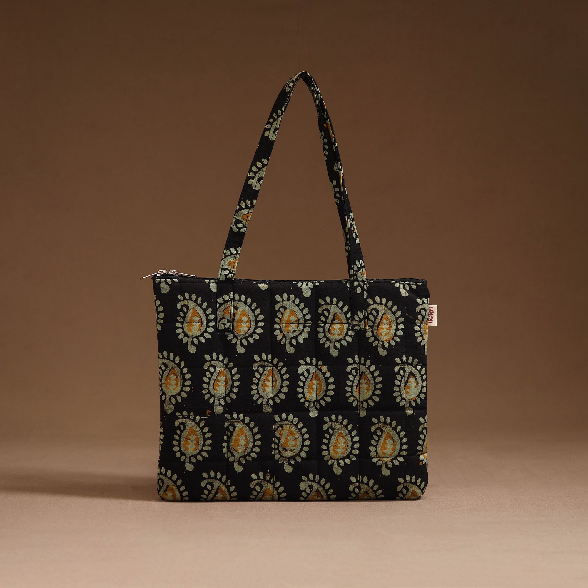 Handcrafted quilted handbag in cotton featuring a secure zippered closure and a spacious interior for your everyday essentials. The soft foam lining enhances durability and protection, making it perfect for daily use or travel.